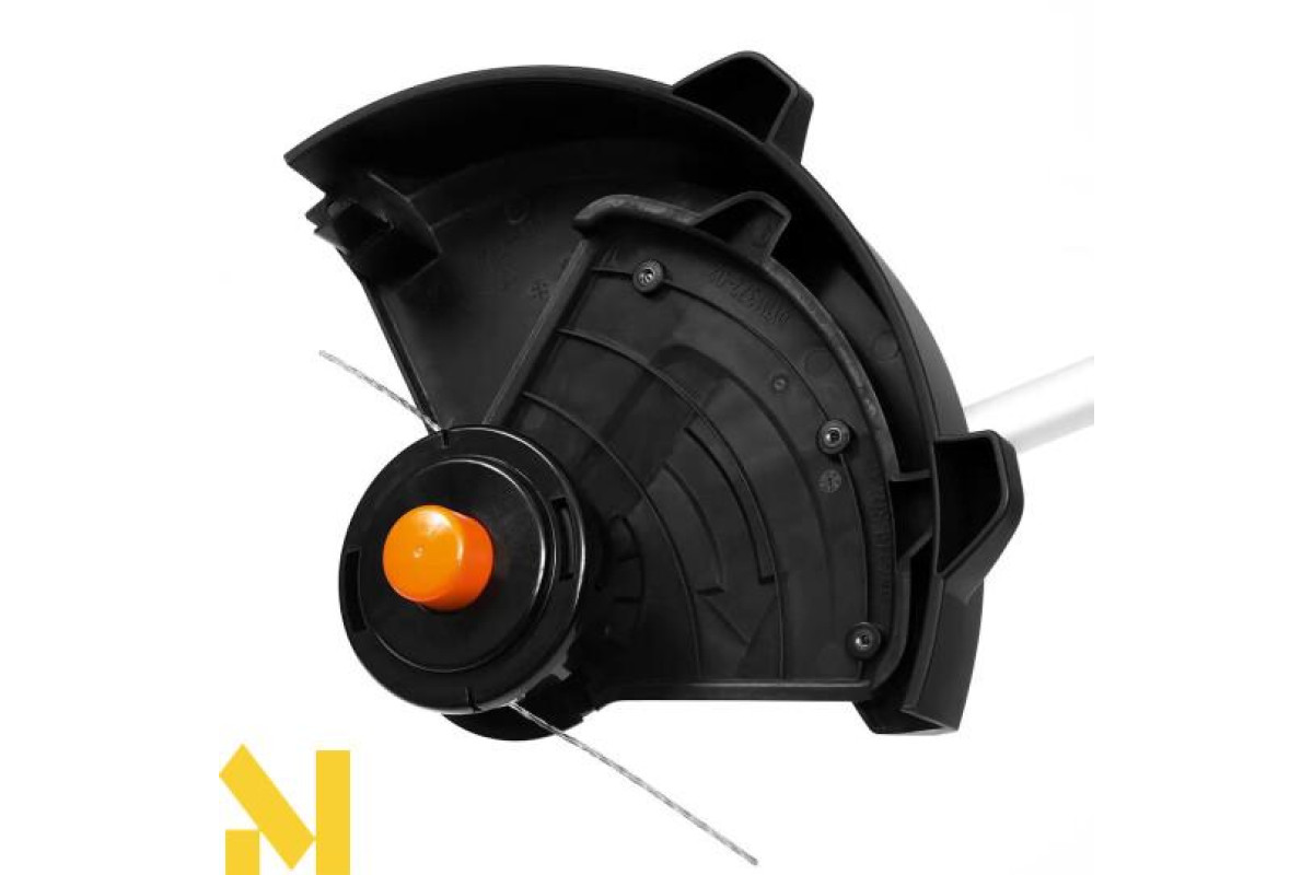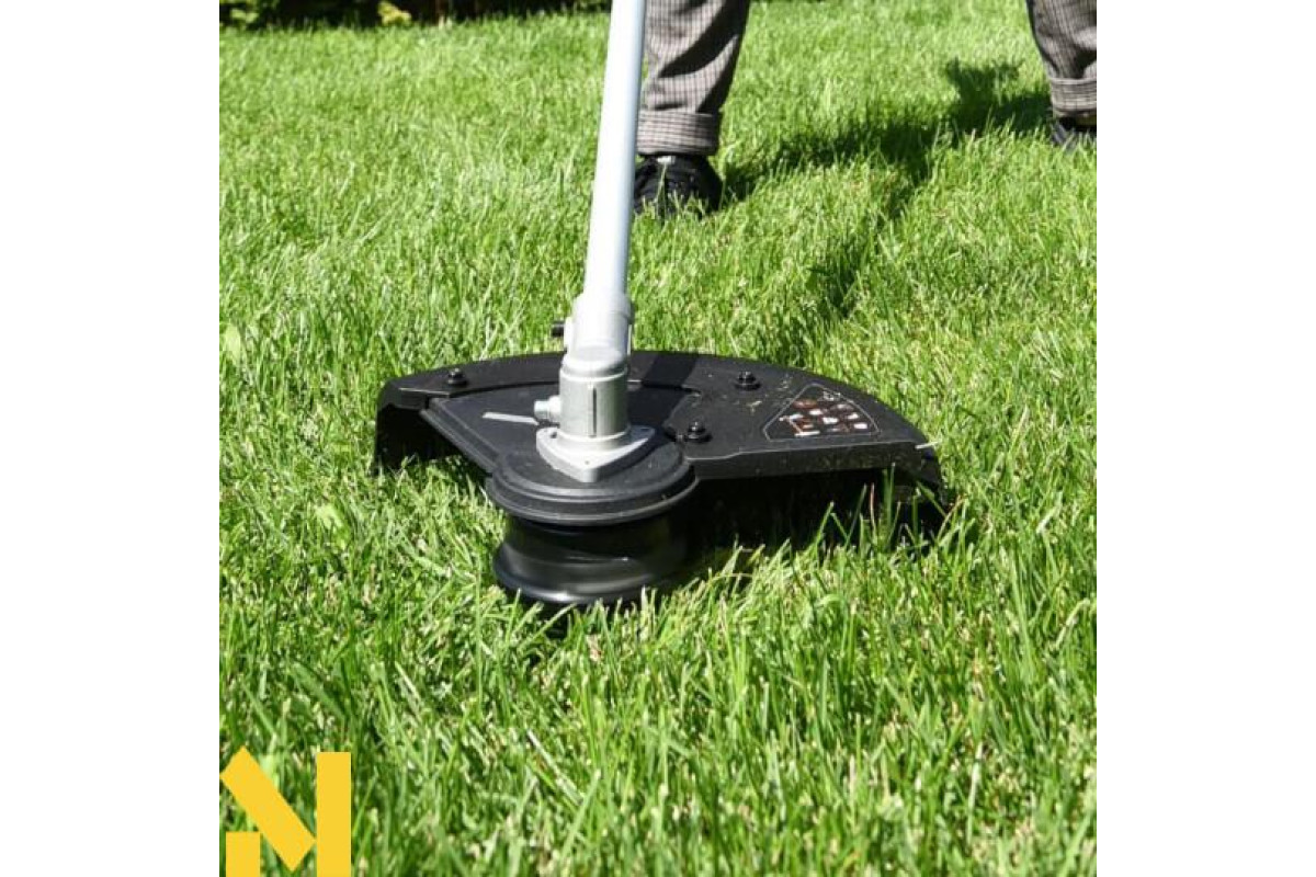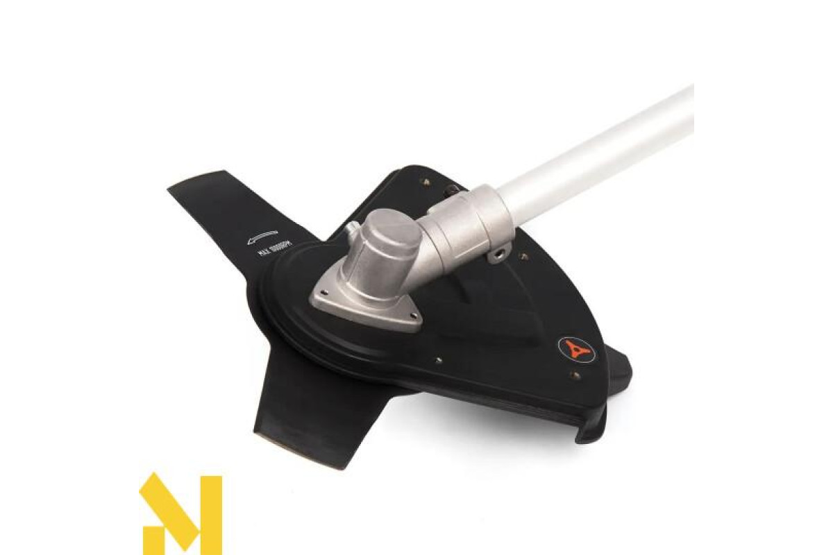 Акумуляторний тример з двигуном у верхній частині пристрою забезпечує хороший баланс і комфорт під час тривалої роботи. Ніж на три зубця виготовлений з високоякісної сталі, тому не вимагає частого заточування. Коса має складну алюмінієву ручку для зручності транспортування та зберігання. Дворучна рукоятка забезпечує комфортну роботу під час косіння.
