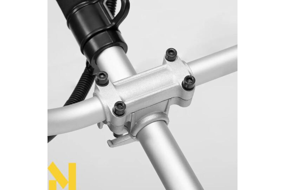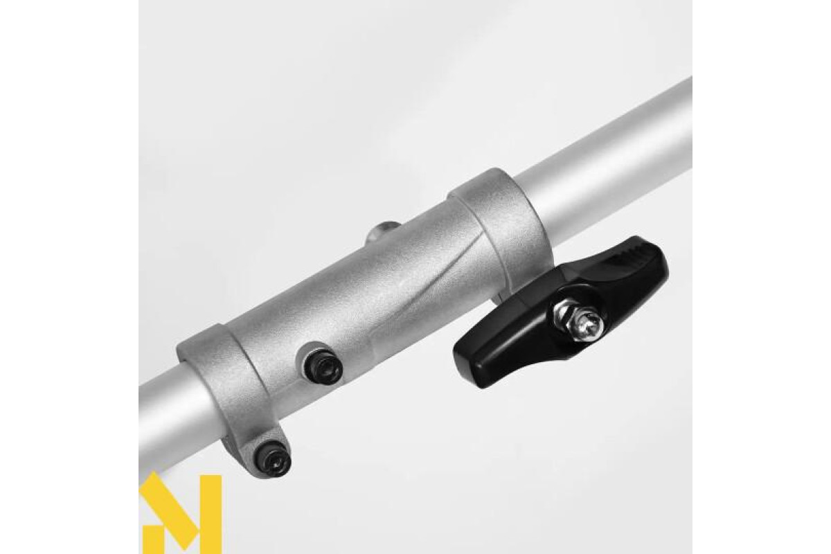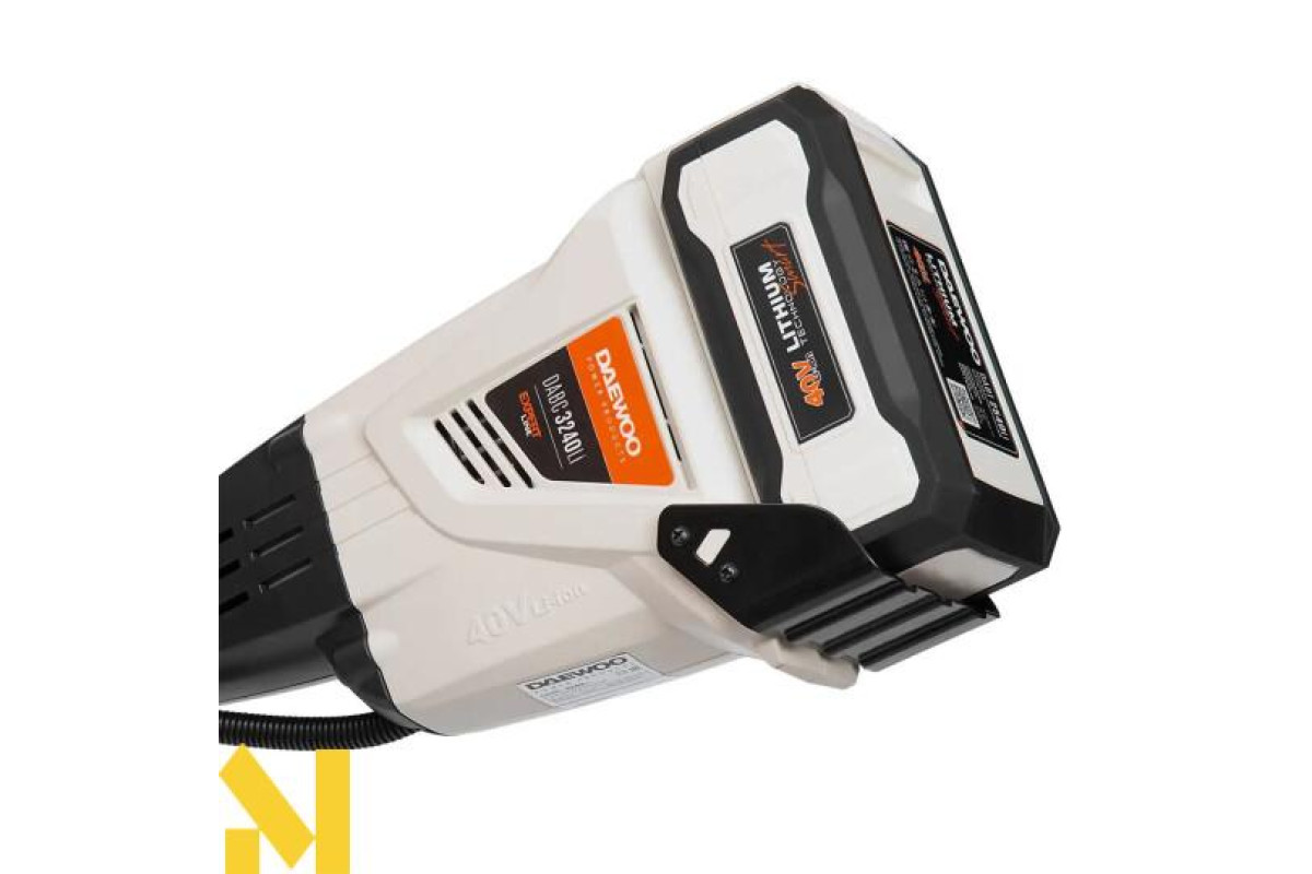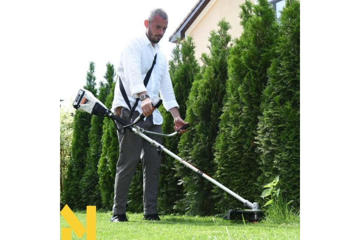 Акумуляторний тример з двигуном у верхній частині пристрою забезпечує хороший баланс і комфорт під час тривалої роботи. Ніж на три зубця виготовлений з високоякісної сталі, тому не вимагає частого заточування. Коса має складну алюмінієву ручку для зручності транспортування та зберігання. Дворучна рукоятка забезпечує комфортну роботу під час косіння.