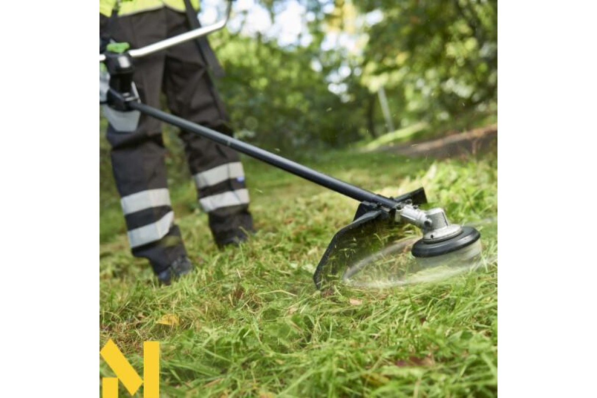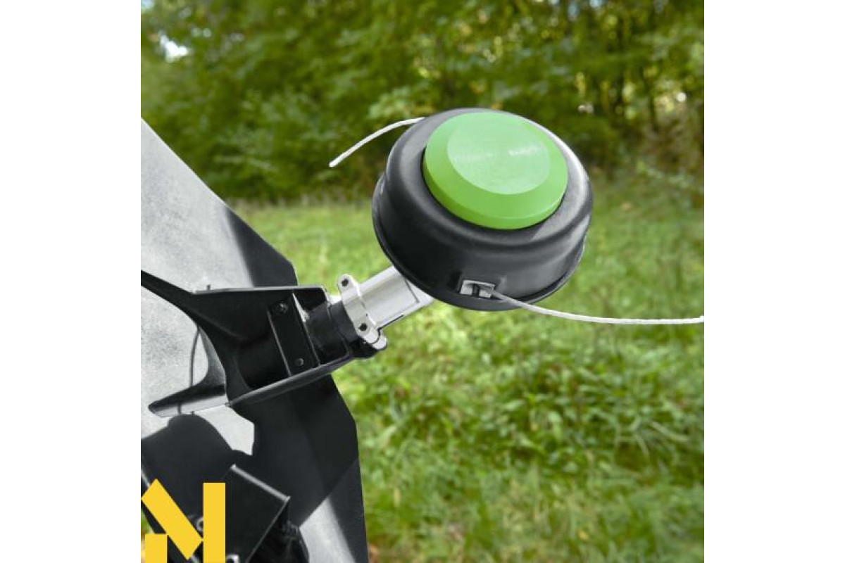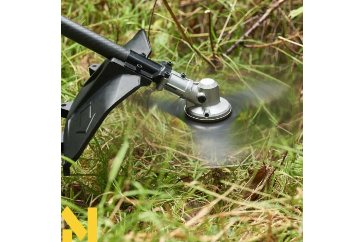 - Інструмент допомогою шпулі з волосінню косить м'яку траву, а трьохпроменевим ножем сухостій, чагарник, очерет, густі зарості;