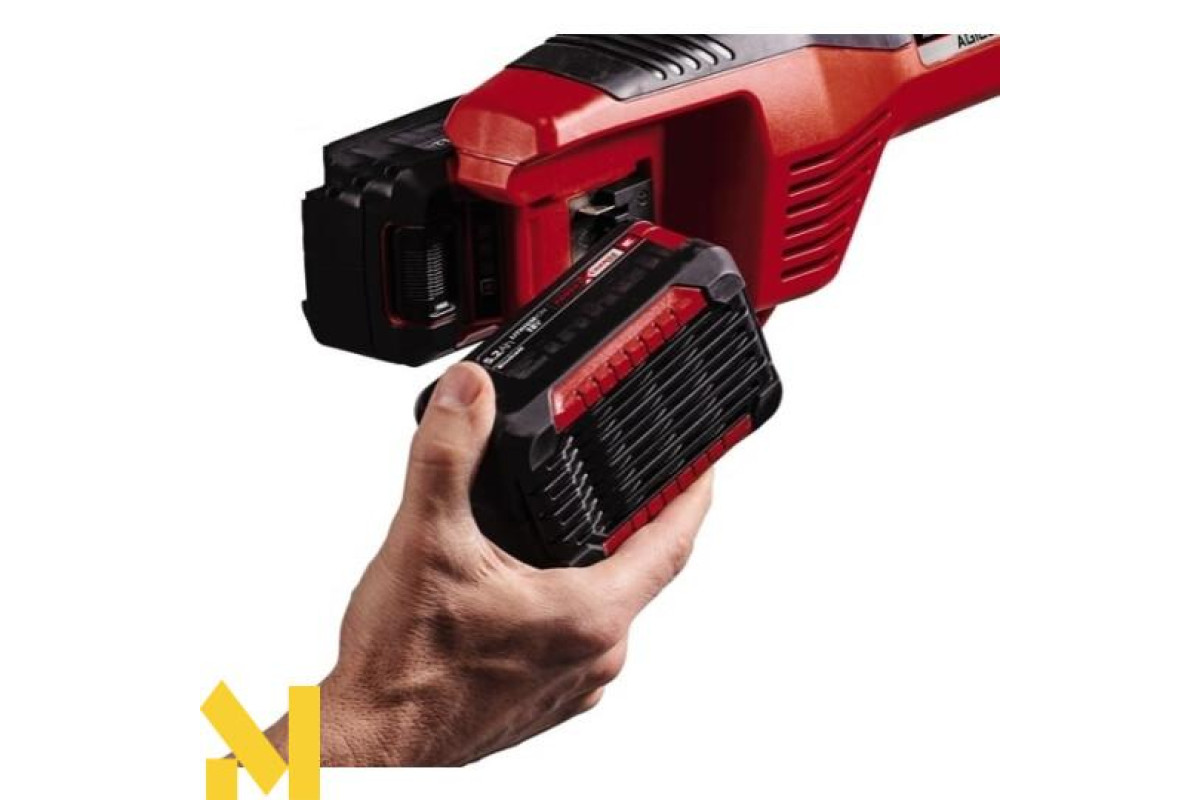 Тример-коса Einhell Agillo має систему блокування шпинделя для легкої зміни ножа на котушку з волосінню, а для полегшення транспортування і економії простору роздільну ручку з міцної алюмінієвої трубки. Акумуляторний тріммер-коса лінійки Power X-Change system Einhell Agillo харчується від двох 18-вольтів батарей.