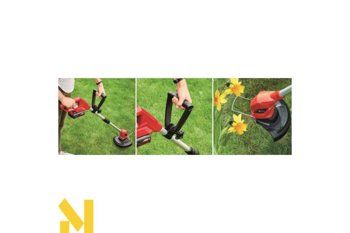 Акумуляторний тример для трави Einhell GC-CT 18/24 Li швидко справляється з прибиранням саду та газонів з кутами та краями. Він швидко та зручно підстригає ваш сад із повною гнучкістю. Акумуляторний тример для трави – високопродуктивний представник серії Power X-Change. Акумулятори із сімейства систем можна використовувати в будь-якому інструменті із серії систем для саду та майстерень. Тример оснащений насадкою Flower Guard від Einhell. Це забезпечує ефективний захист від пошкоджень квітів та декоративних рослин. Безступінчасто регульована телескопічна довга рукоятка налаштовується точно відповідно до вимог домашнього садівника і, таким чином, сприяє невтомній роботі. Акумуляторний тример зі швидкістю обертання ножів 8500 об/хв є потужним, добре оснащеним помічником для догляду за рослинністю на газонах, майданчиках та у важкодоступних місцях у саду. Лезо має ширину різу 24 сантиметри. Продукт поставляється в комплекті з 20 пластиковими лезами, акумулятором 2,0 Аг та системним зарядним пристроєм.