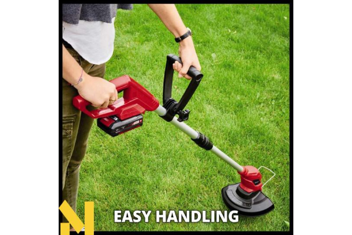 Новий бездротовий акумуляторний тример лінійки Power X-Change system Einhell GC-CT 18/24 Li - Solo серії Classik являє собою потужний інструмент, який допоможе вам зберегти ваш газон в ідеальному стані в тих місцях, які не можуть бути оброблені за допомогою газонокосарки. Тихий, безпечний і простий в обігу. Ви можете працювати саме там, де це Вам необхідно завдяки відсутності кабелю живлення, немає необхідності в розетках і кабельних барабанах і повністю відсутній ризик випадкового пошкодження кабелю або можливість спіткнутись об нього. В акумуляторному тримері Einhell GC-CT 18/24 Li - Solo використовується нова революційна система скошування трави: замість громіздких барабанів з волосінню тут застосовується міцний пластиковий ріжучий ніж. Телескопічна довга ручка тримера і додаткова рукоятка можуть бути плавно відрегульовані під зріст користувача для зручної роботи. Обмежувач захисту квітів Flowerguard дозволяє зберегти Ваші квіти і декоративні рослини від пошкодження. Інструмент поставляється з Power X-Change акумулятором 18V 2,5 Ah і зарядним пристроєм.