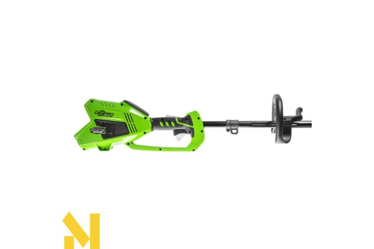 Модель оснащено надійним безщітковим двигуном DigiPro, порівнянним за потужністю з бензиновими аналогами, при цьому він абсолютно екологічний, має високий крутний момент, низький рівень шуму і вібрацій, простий в експлуатації. Ввімкнення тримера здійснюється однією кнопкою, основне застосування — підрізування трави у важкодоступних для газонокосарки місцях, а також підрізування кущів.