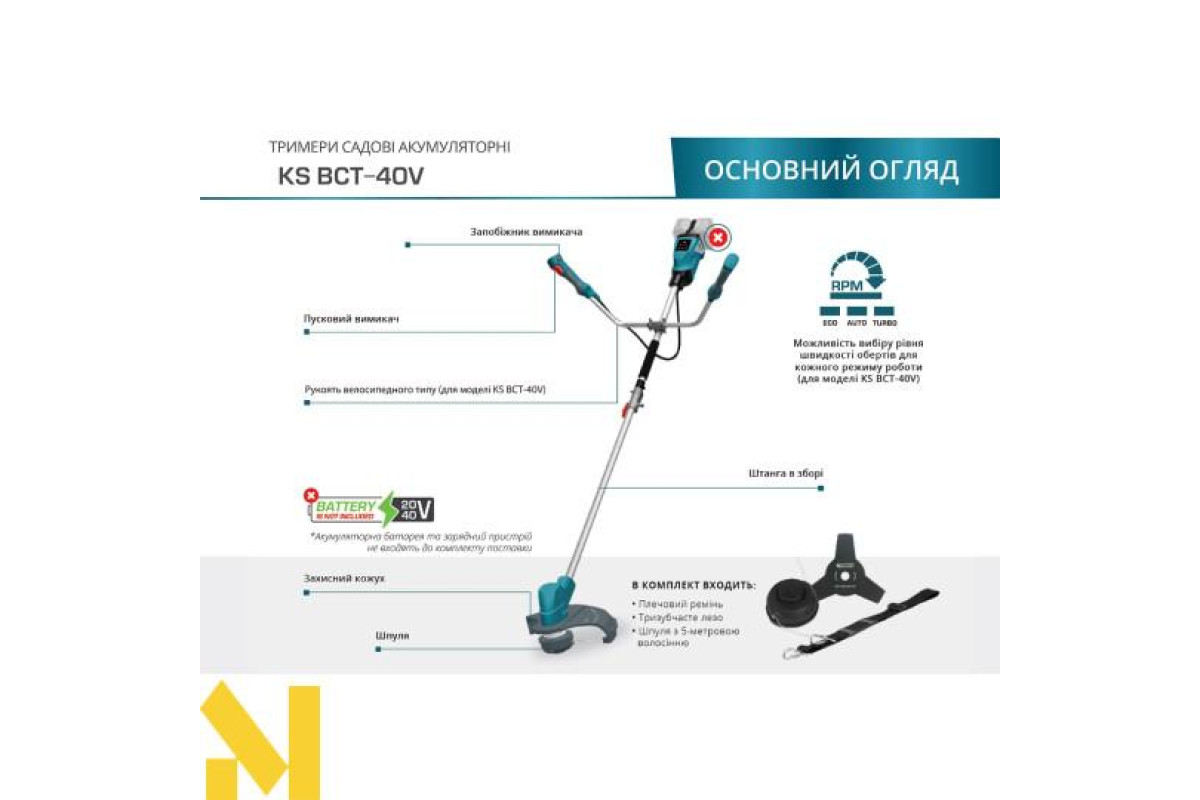 Документація Тример акумуляторний Konner&Sohnen KS BCT-40V (без АКБ та ЗП)