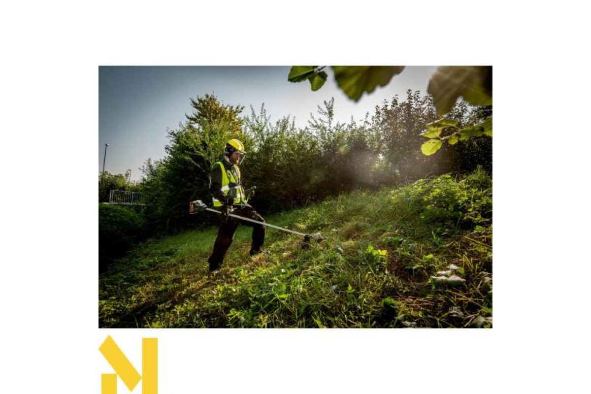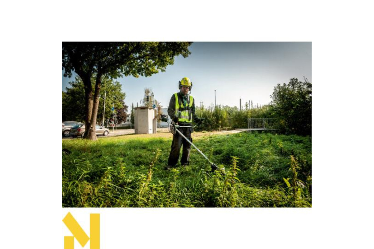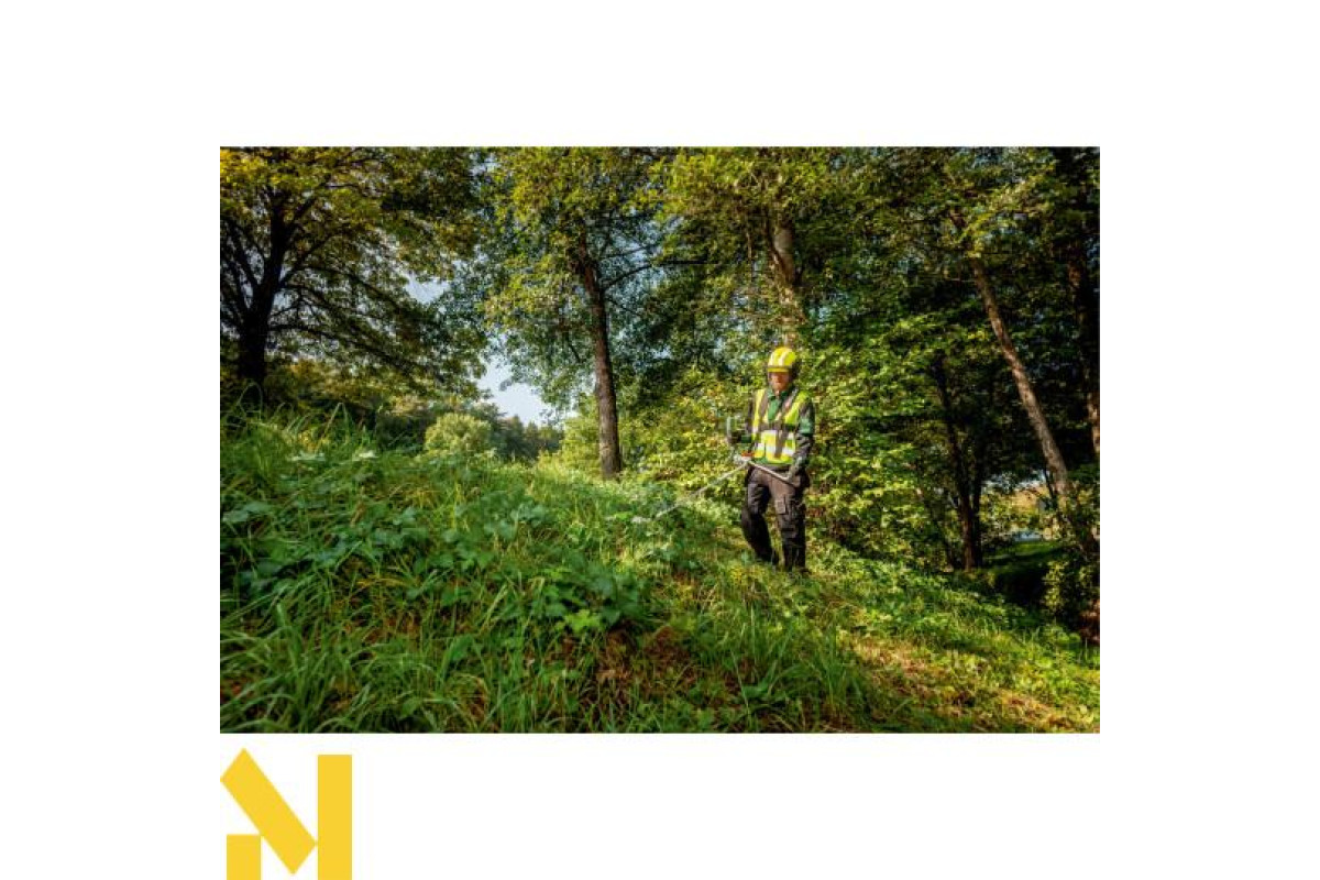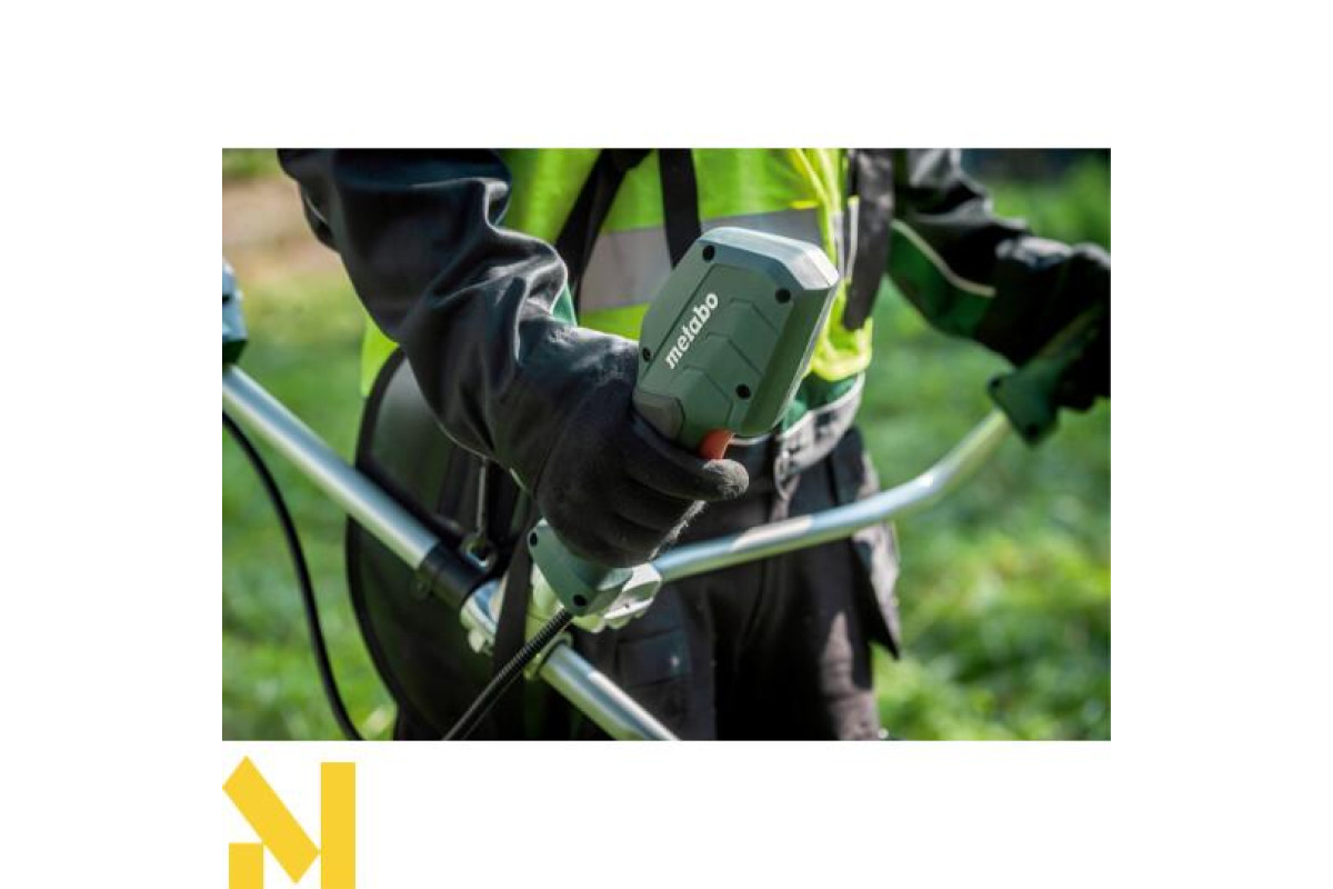 Тиха акумуляторна мотокоса з велосипедною ручкою, що регулюється, для комфортної роботи також на великих площах