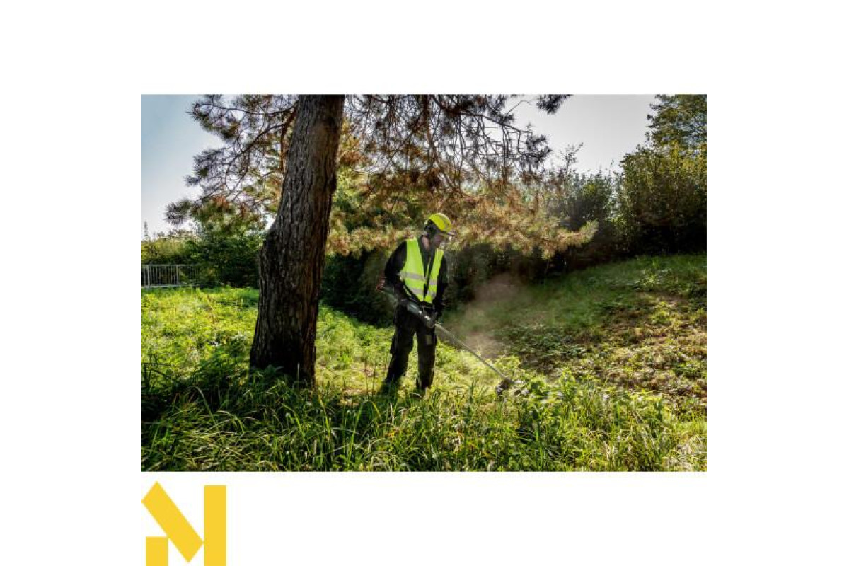 Тиха акумуляторна мотокоса з компактною ручкою-скобою для ефективної роботи також в умовах обмеженого простору