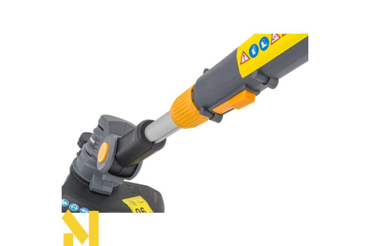Регулювання кута нахилу головки тримера для трави є надзвичайно практичною функцією, яка значно полегшує косіння у важкодоступних місцях. Завдяки можливостірегулювання кута нахилу головикористувач може точно косити траву вздовжбордюрів, під лавками, навколо дерев і на нерівній місцевості.