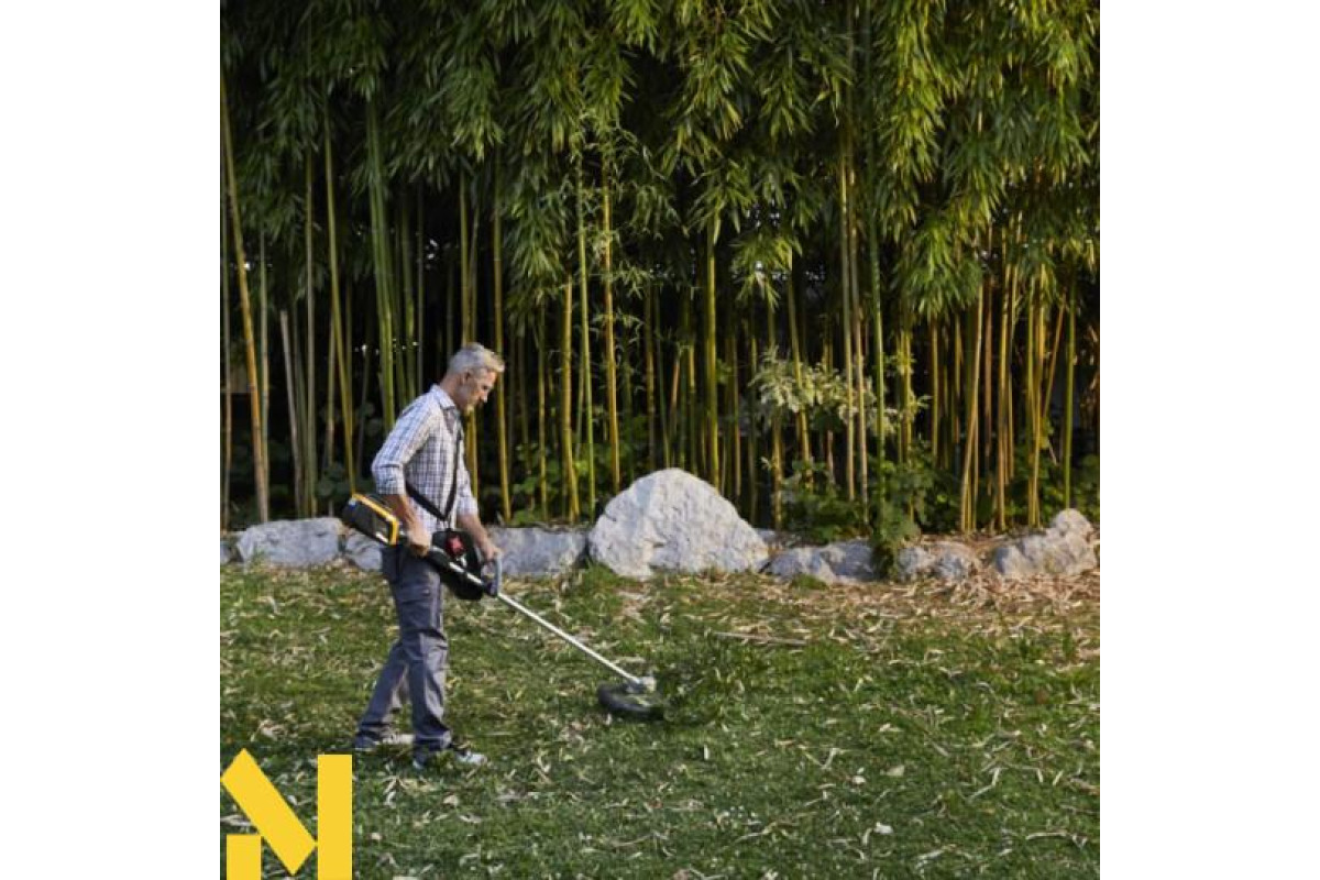 У стандартний комплект поставки входить металевий диск з 4 ножами і тріммерная головка Tap&Go, яка дозволяє швидко додати корд, просто постукуючи голівкою об землю. Рекомендований акумулятор ємністю 4,0 Ач продається окремо.