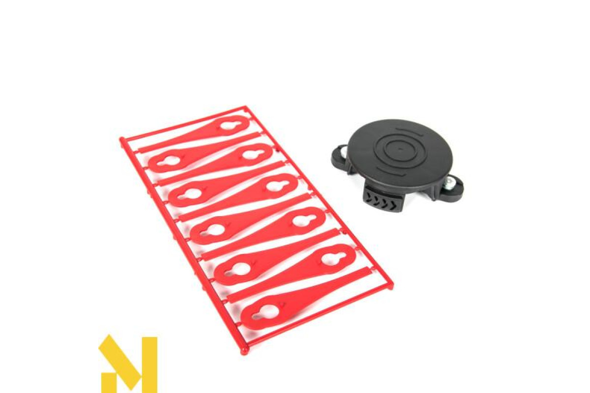Два варіанти оснащення служать для зрізу газонних трав, сухостою, густій рослинності, боротьби з жорсткими бур'янами. Залежно від вихідних умов встановлюється шпуля з кордом або ножові елементи, зміна яких максимально полегшена для користувача. Косильна головка може бути повернута на 90 град. для реалізації складних завдань.