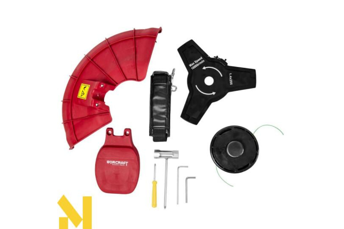 Комплектація містить котушку з ліскою та 3-х лопатевий сталевий ніж для ефективної роботи з різними типами трави та чагарників.