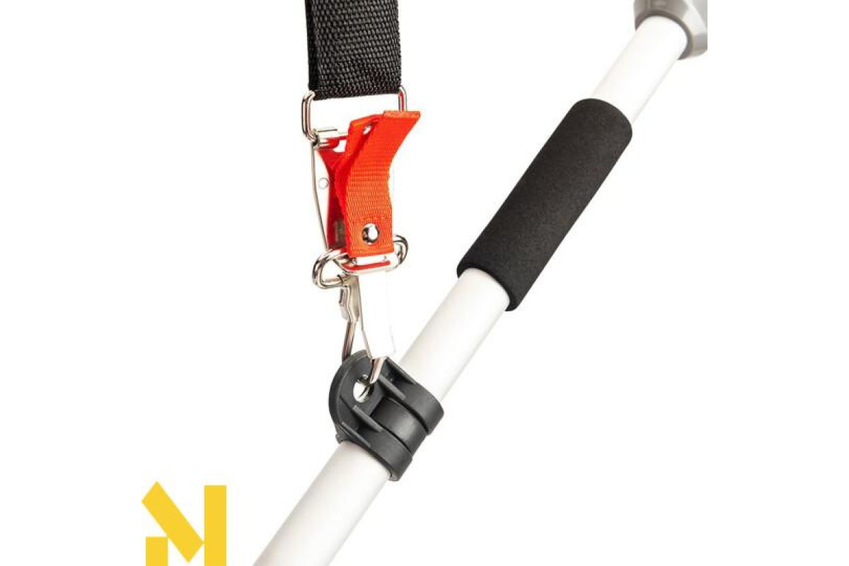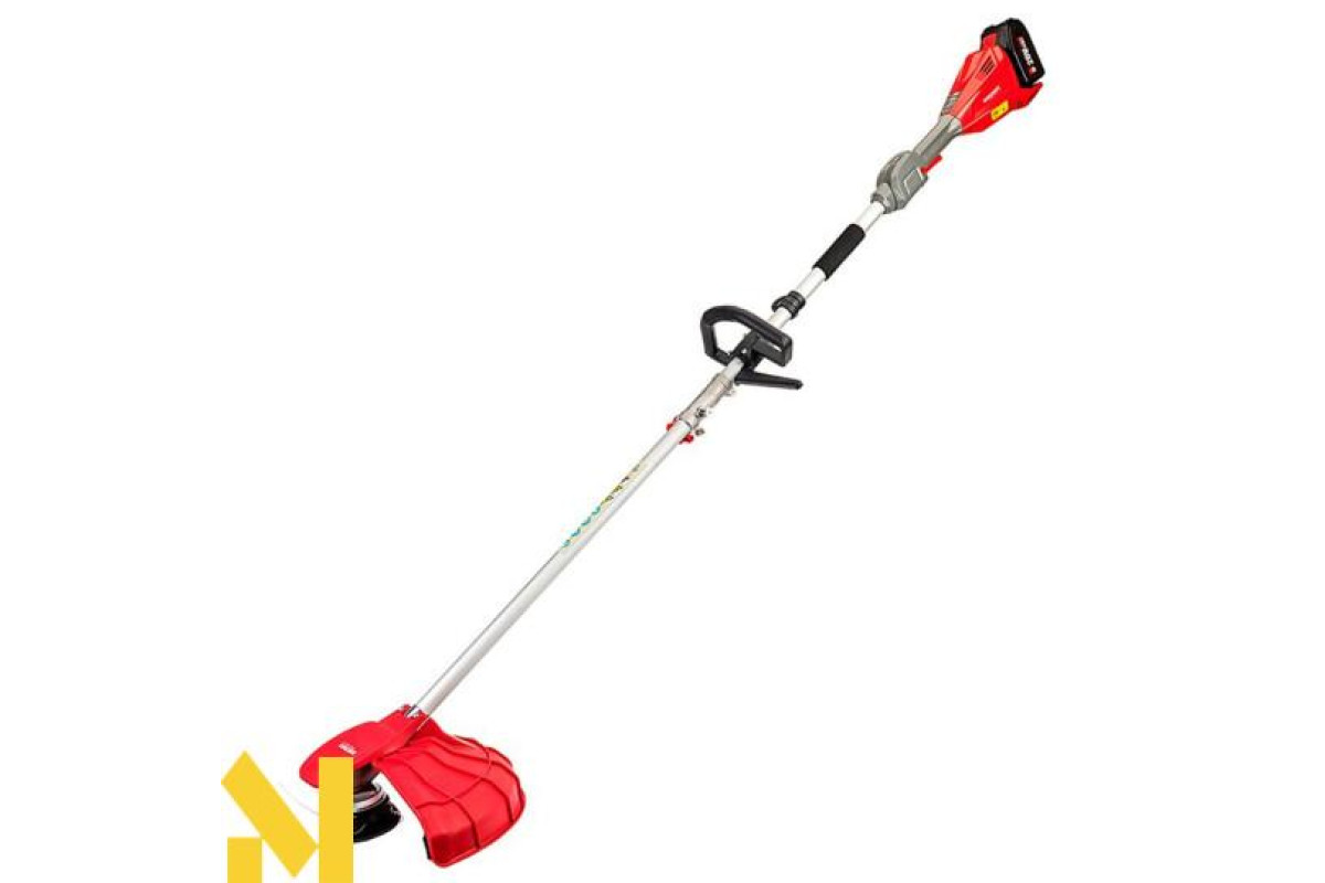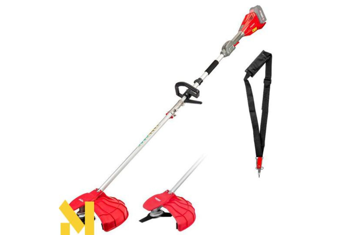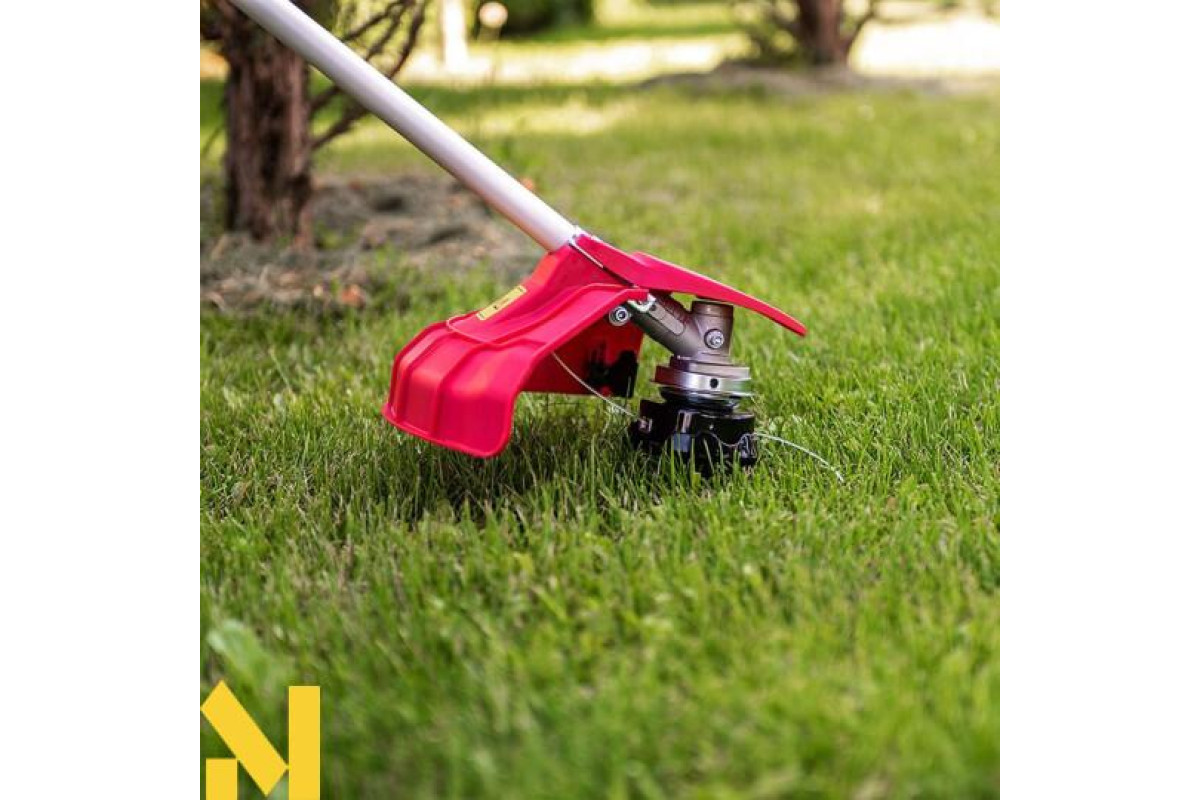 Кнопка блокування пускової клавіші та електронна система активації допомагають уникнути випадкового включення інструменту. Ремінь на плече в комплекті допомагає знизити навантаження на руки та обробити газон швидше і якісніше.
