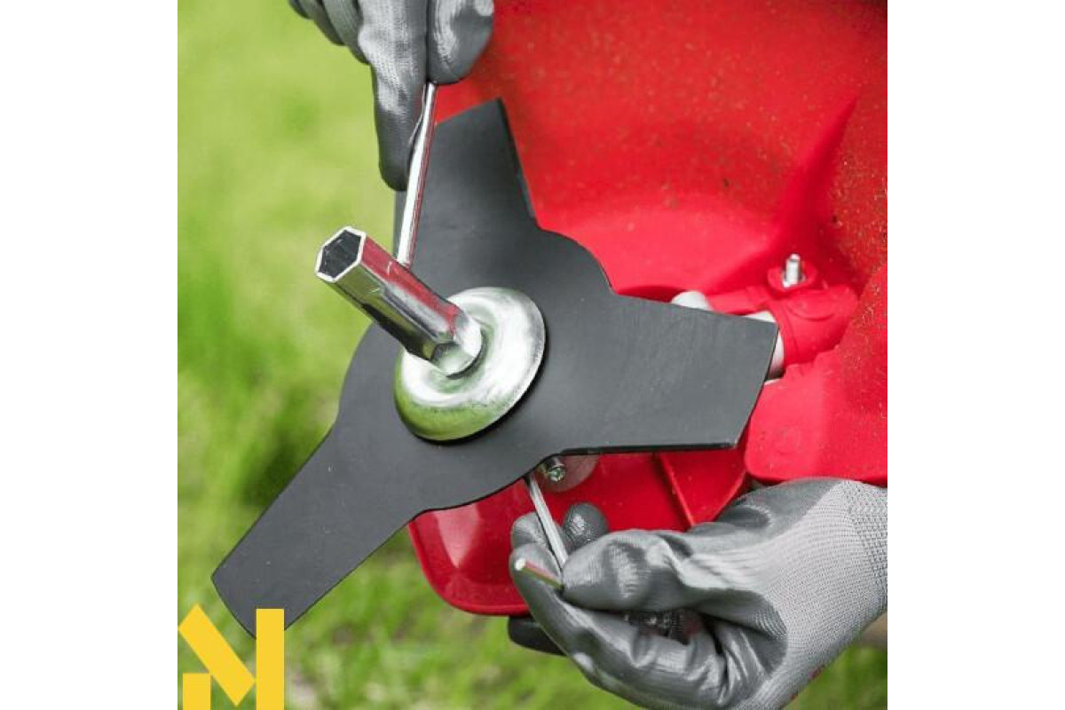 Комплектація містить котушку з жилкою та 3-х лопатевий сталевий ніж для ефективної роботи з різними типами трави та чагарників.