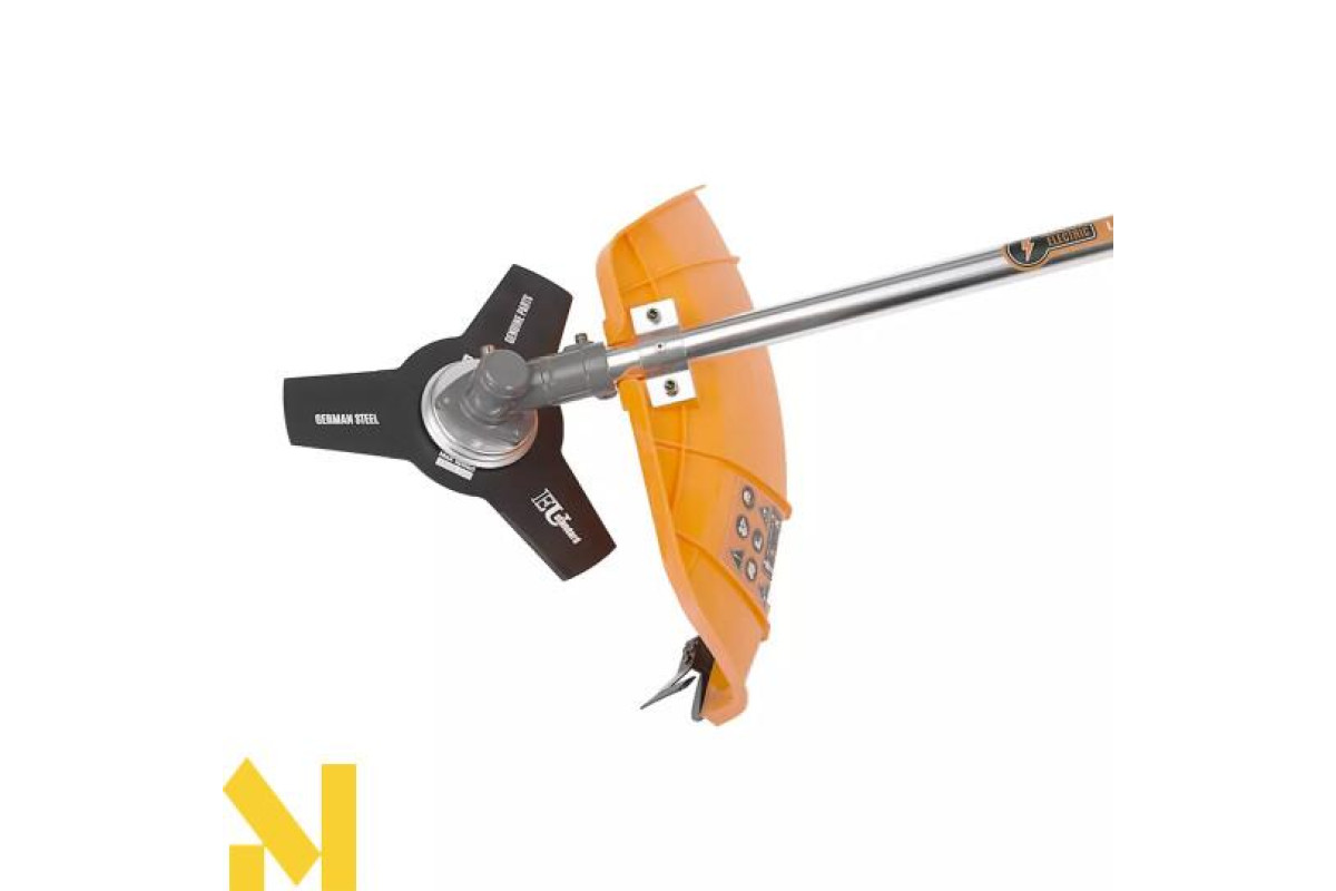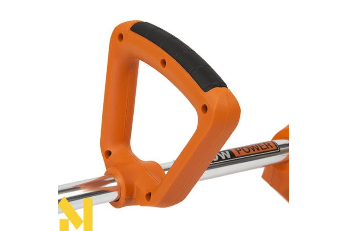 Електрична мотокоса з двигуном у верхній частині пристрою гарантує оптимальний баланс і комфорт при тривалій експлуатації. Тризубий ніж виготовлений з високоякісної сталі. Коса має складну алюмінієву ручку для зручності зберігання.