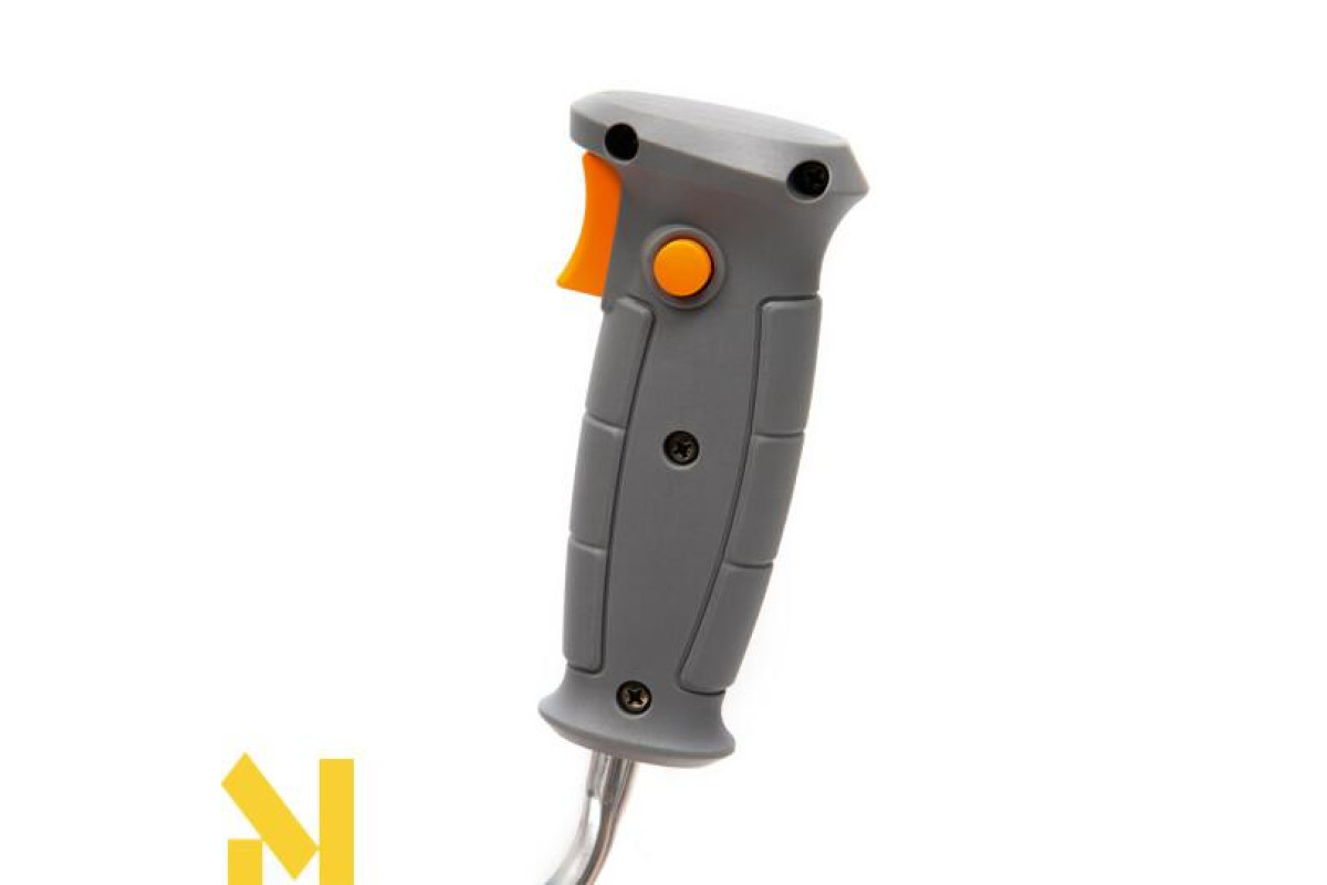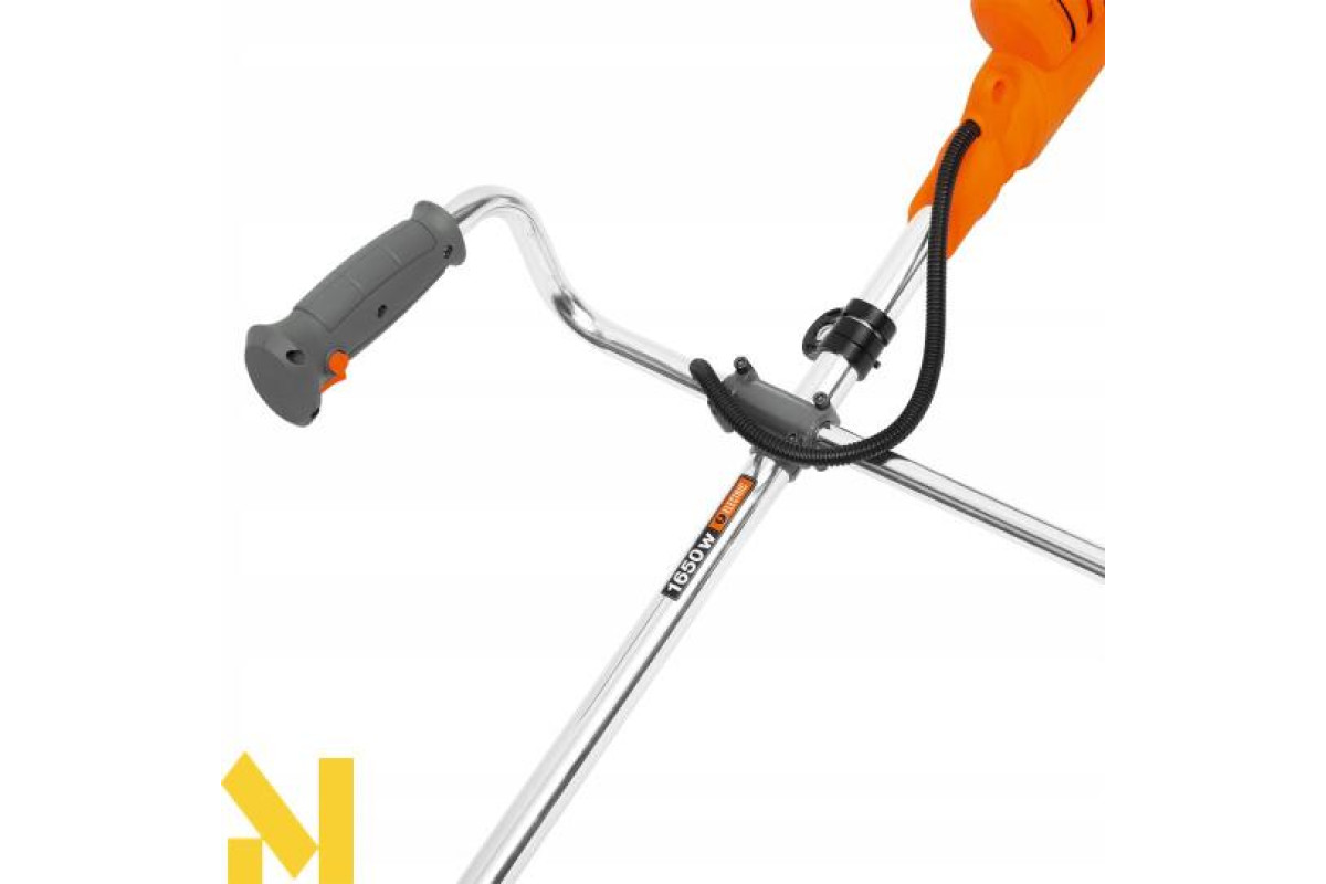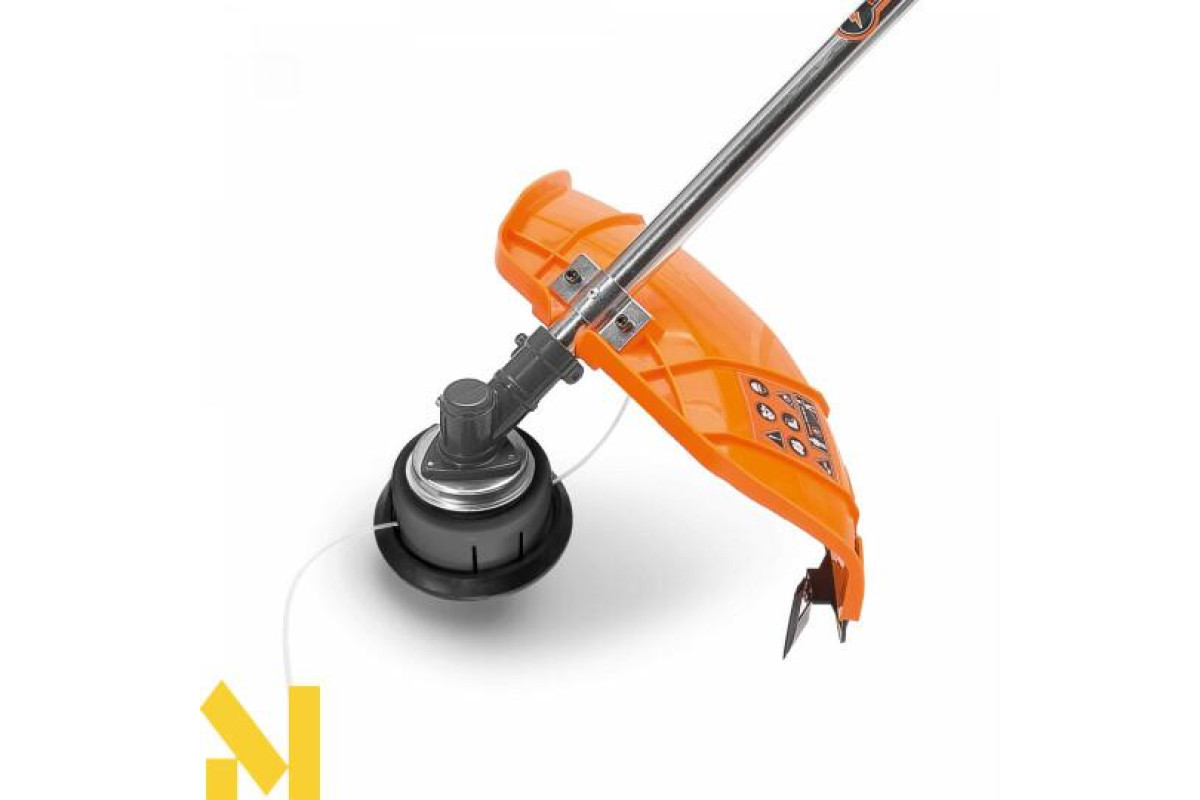 Електричний тример з двигуном у верхній частині пристрою гарантує оптимальний баланс і комфорт при тривалій експлуатації. Відрізний диск виготовлений з високоякісної сталі. Коса має складну алюмінієву ручку для зручності зберігання.