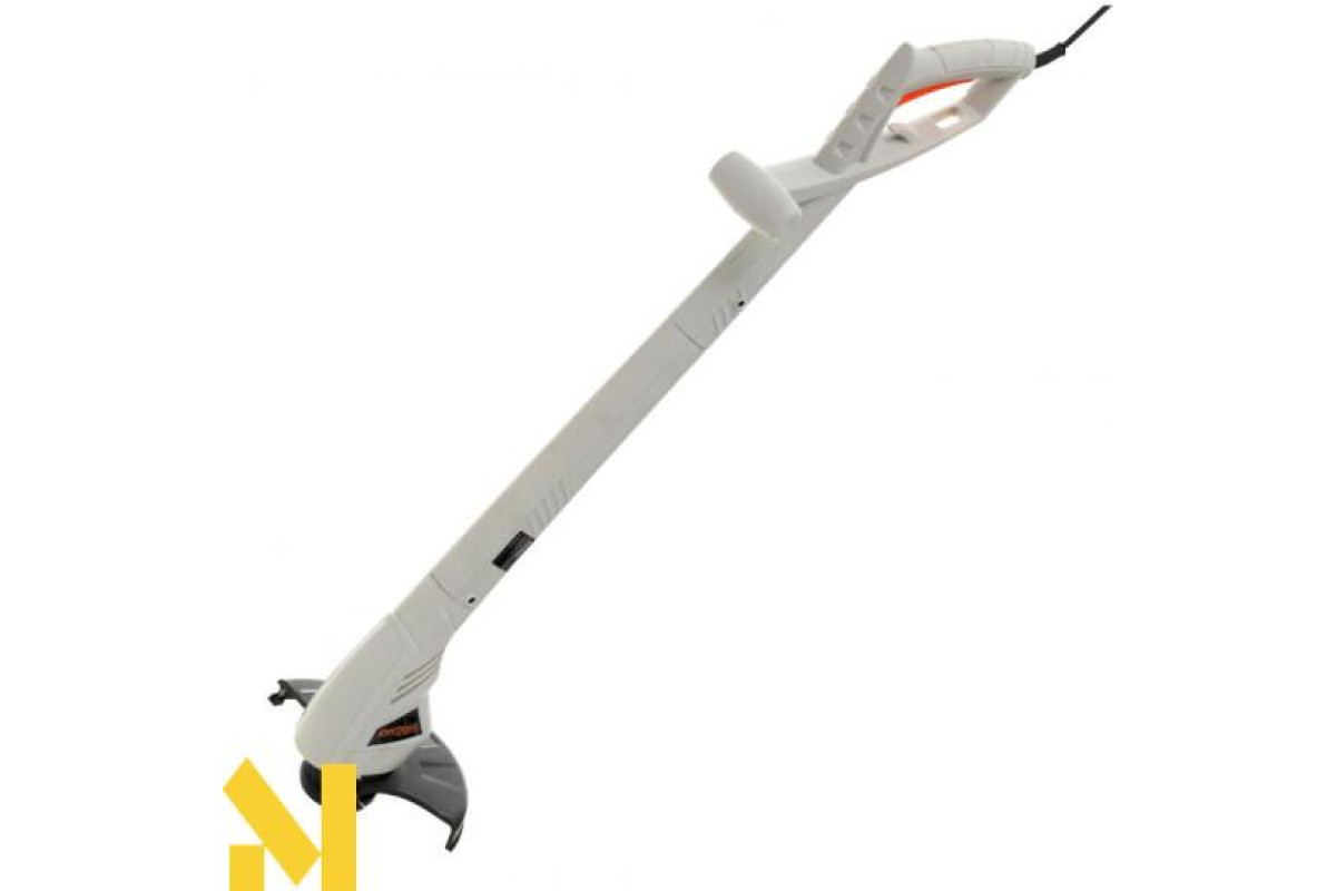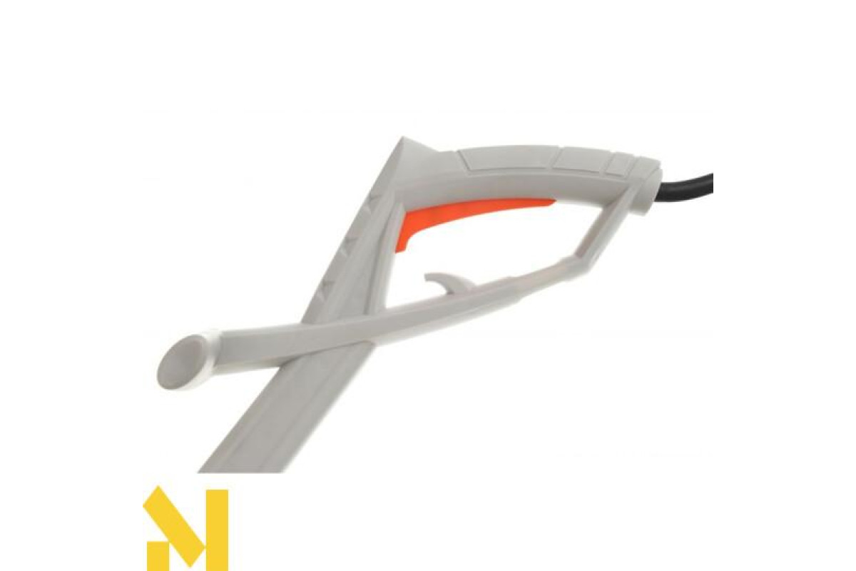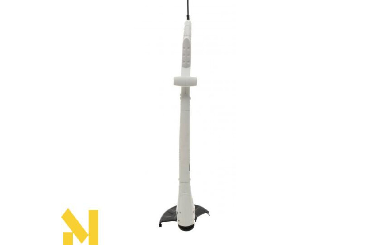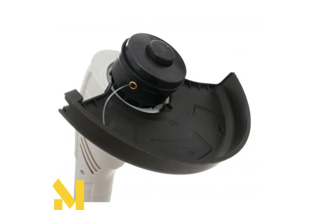 Тример оснащений чохлом, що оберігає його від пошкоджень при скошуванні біля стіни або огорожі. Він також має зручну ручку, яка дозволяє легко маневрувати пристроєм.