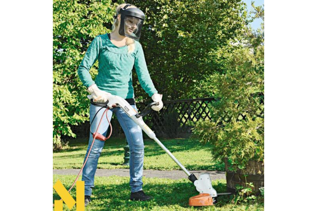 Для косіння молодої трави навколо будинку та в садочку. Оснащена телескопічним штоком, круглою ручкою, що регулюється без будь-яких інструментів, захисним упором, що захищає під час косіння рослини та кору дерев від пошкодження. Має збільшений до 300 мм радіус скошування, фіксатор кабелю, та поворотну косильну головку, що можна налаштувати під кутом 90° для обкошування країв газону.