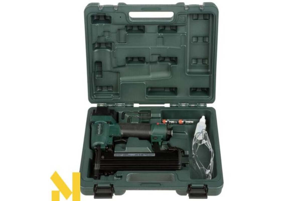 Metabo DKNG 40/50 - універсальний інструмент, який підходить як для скоб, так і для цвяхів. Спеціальна конструкція пістолета дозволяє працювати в обмежених умовах і в важкодоступних місцях. Перемикання між скобами і заклепками не вимагає переоснащення, що дозволяє уникнути простоїв і гарантує ефективність в роботі. Інструмент оснащений зручною прогумованою рукояткою - для зручності роботи.