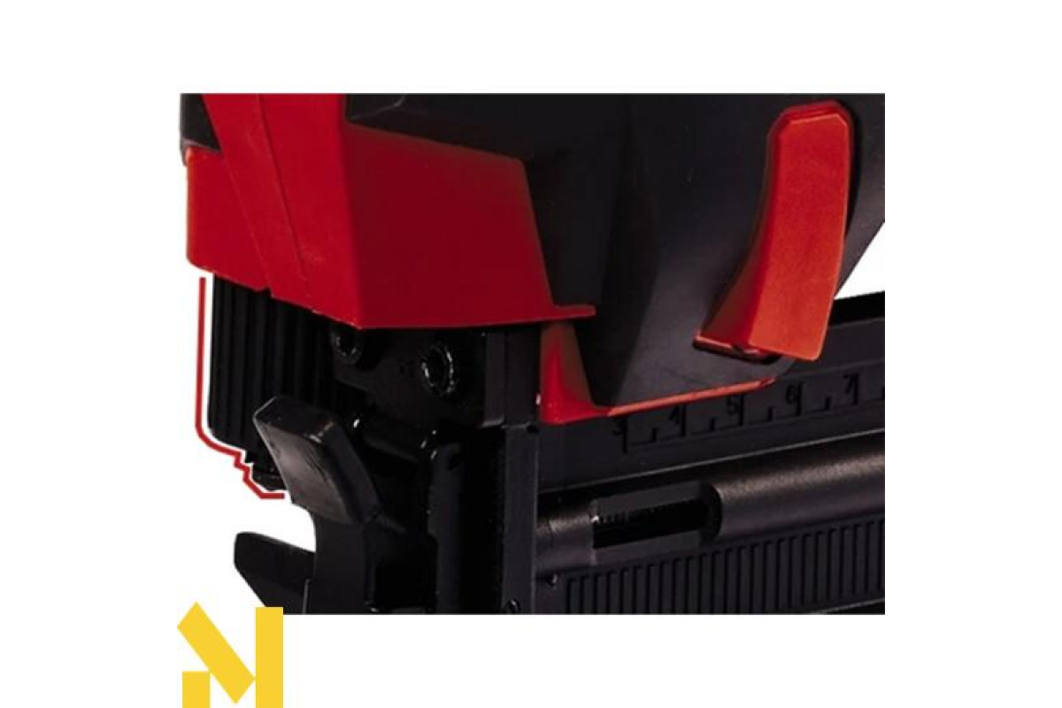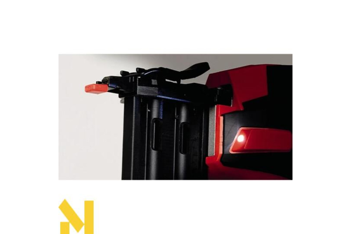 Акумуляторний цвяхозабивний пристрій можна використовувати з цвяхами завдовжки 15-50 мм і завширшки 1,0 мм. Тонка конструкція з прогумованими бічними поверхнями й ергономічною м'якою ручкою забезпечують зручне використання. Світлодіодне освітлення, вбудоване з обох боків корпусу, забезпечує оптимальне освітлення робочої зони.