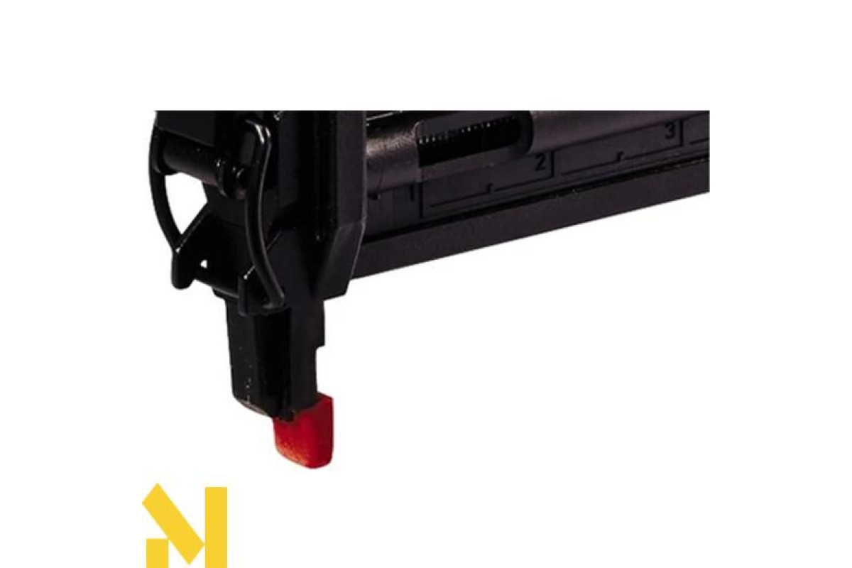 До комплекту постачання входить практична кліпса для безпечного проміжного зберігання і 500 цвяхів (50 мм x 1 мм). Запобіжний носик запобігає випадковому спрацьовуванню цвяхозабивача і в такий спосіб захищає від травм.