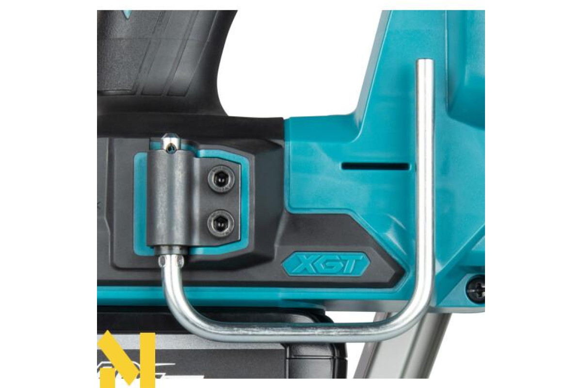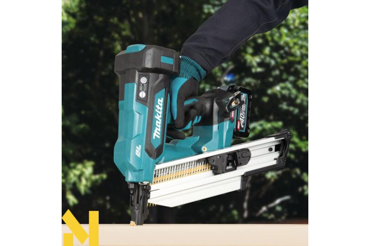 Акумуляторний цвяхозабивач з безщітковим двигуном, здатний забивати цвяхи довжиною до 90 мм. Гумові захисні відбійники захищають матеріал і корпус інструменту від подряпин і пошкоджень. З можливістю контролю кількості цвяхів у магазині. 2 режими роботи: режим поодинокого пострілу та режим контактного запуску для швидкого послідовного забивання. Завдяки технології XPT пристрій має підвищену стійкість до пилу та вологи: