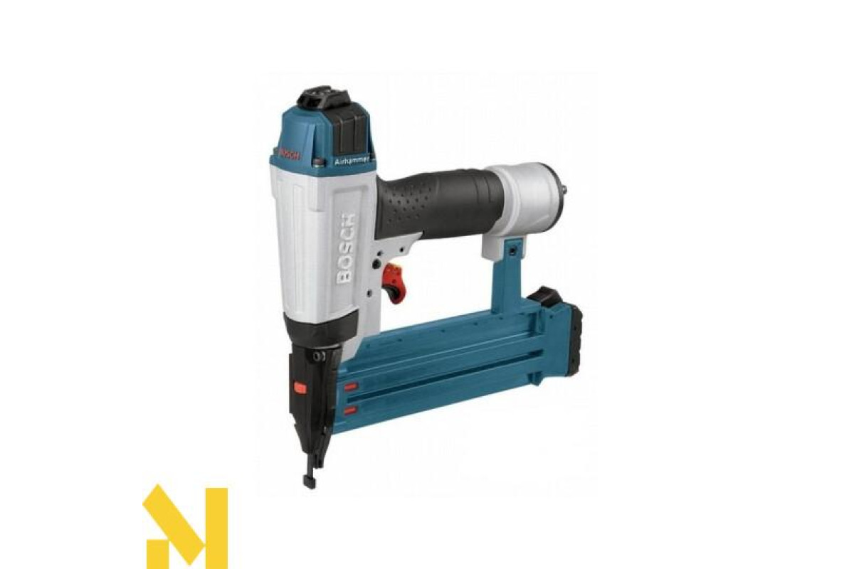 Пневматичний гвоздезабівателі Bosch GSK 50, який ми представляємо Вам, виготовлений за новітньою технологією, і є неймовірно зручним інструментом, який дозволяє працювати в самих важкодоступних місцях, забезпечує найкраще положення під час роботи. Блокування ударного механізму і прогумованому наконечник забезпечує щонайкраще заготівлю в цілості й схоронності, запобігає пошкодження. Має високу швидкість роботи, можливість дуже швидкої зарядки магазину і неймовірну легкість при витяганні застряглих цвяхів. Пневматичний гвоздезабівателі Bosch GSK 50 - інструмент для професіоналів, дуже легке виріб - вагою всього в 1,1 кілограм, має дуже компактні розміри. Корпус виконаний з магнієвого сплаву, що забезпечує пневматичної гвоздезабівателі Bosch GSK 50 неймовірну міцність і надійність. Тип цвяхів, використовуваний молотком Bosch GSK 50 - штфіт, довжина цвяхів від 13 до 50 міліметрів і діаметр цвяхів 1,2 міліметра. Робочий тиск в діапазоні 2 - 8 атмосфер. Рівень шуму дуже невисокий, всього 88 децибел.