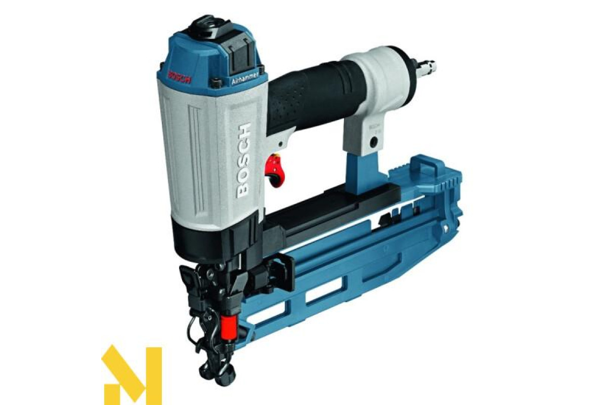 Пропонуємо Вашій увазі пневматичний гвоздезабівателі Bosch GSK 64 від всесвітньо відомої торгової марки Bosch, який виготовлений за сучасною інноваційної технології, неймовірно зручний і дозволяє працювати у важкодоступних місцях. Вузький корпус інструмента забезпечує відмінний огляд зони роботи. Наконечник пневматичного гвоздезабівателі прогумований, для того щоб запобігти пошкодженню поверхонь. Bosch GSK 64 володіє дуже високою швидкістю роботи за рахунок затискного важеля дозволяє дуже швидко зарядити магазин, а застряглі цвяхи неймовірно легко і швидко витягуються. Пневматичний гвоздезабівателі Бош GSK 64 ідеально підходить і для професіоналів, і для людей які мають трохи досвіду в ремонтних і теслярських роботах. Пневматичний молоток Bosch GSK 64 має компактні габаритні розміри і дуже легкий вага: лише 1,6 кілограм. Корпус виготовлений з магнієвого сплаву для високої надійності при виконанні різноманітних робіт. Тип цвяхів, використовуваний Bosch GSK 64 - штфіт, довжиною від 25 до 64 міліметрів і діаметром 1,6 міліметрів. Робочий тиск в діапазоні 4 - 8 атмосфер. Рівень шуму надзвичайно низький, всього 96 децибел. Пневматичний гвоздезабівателі упакований в зручний пластиковий кейс.