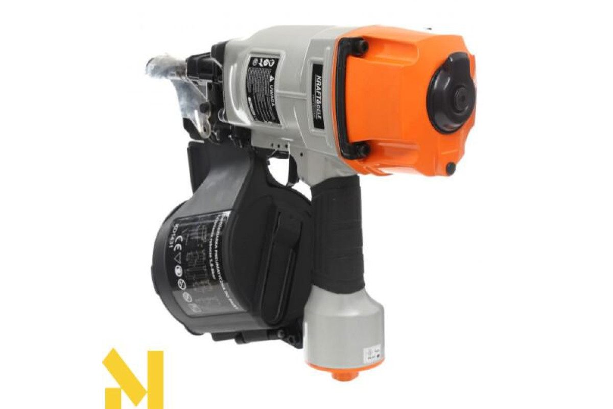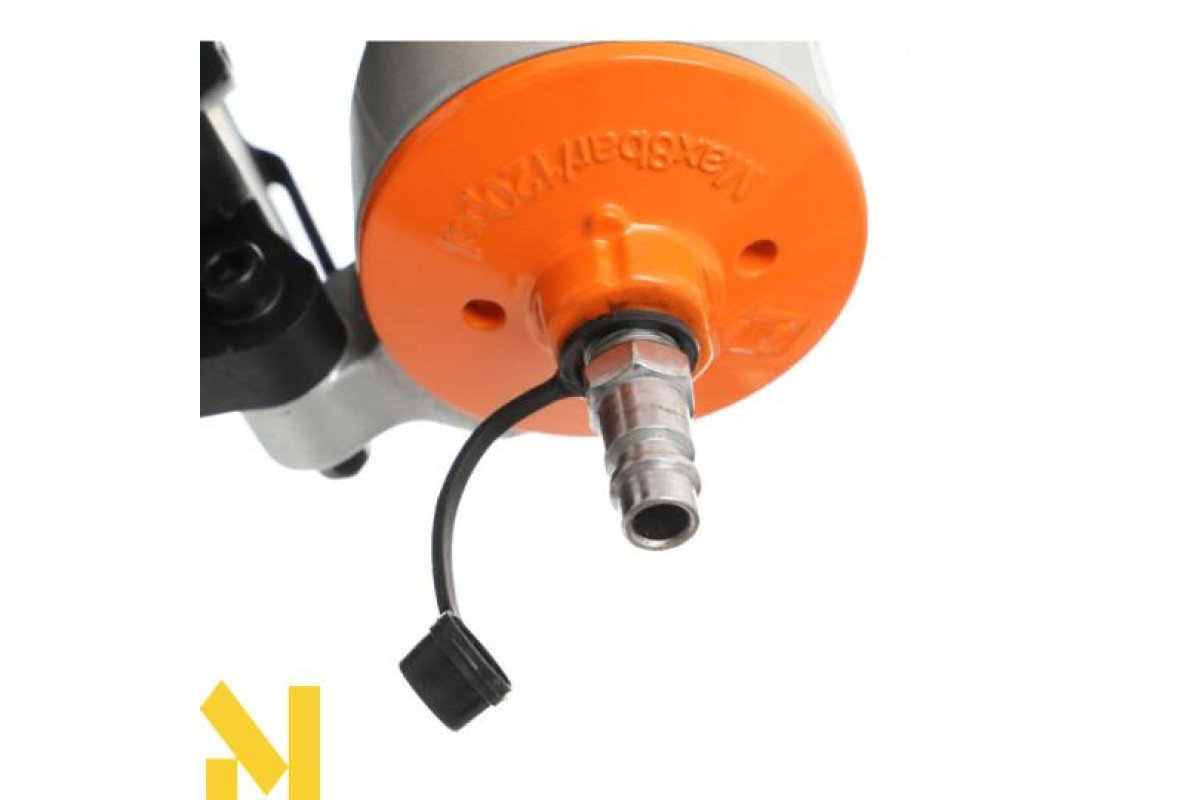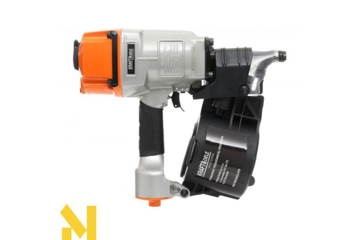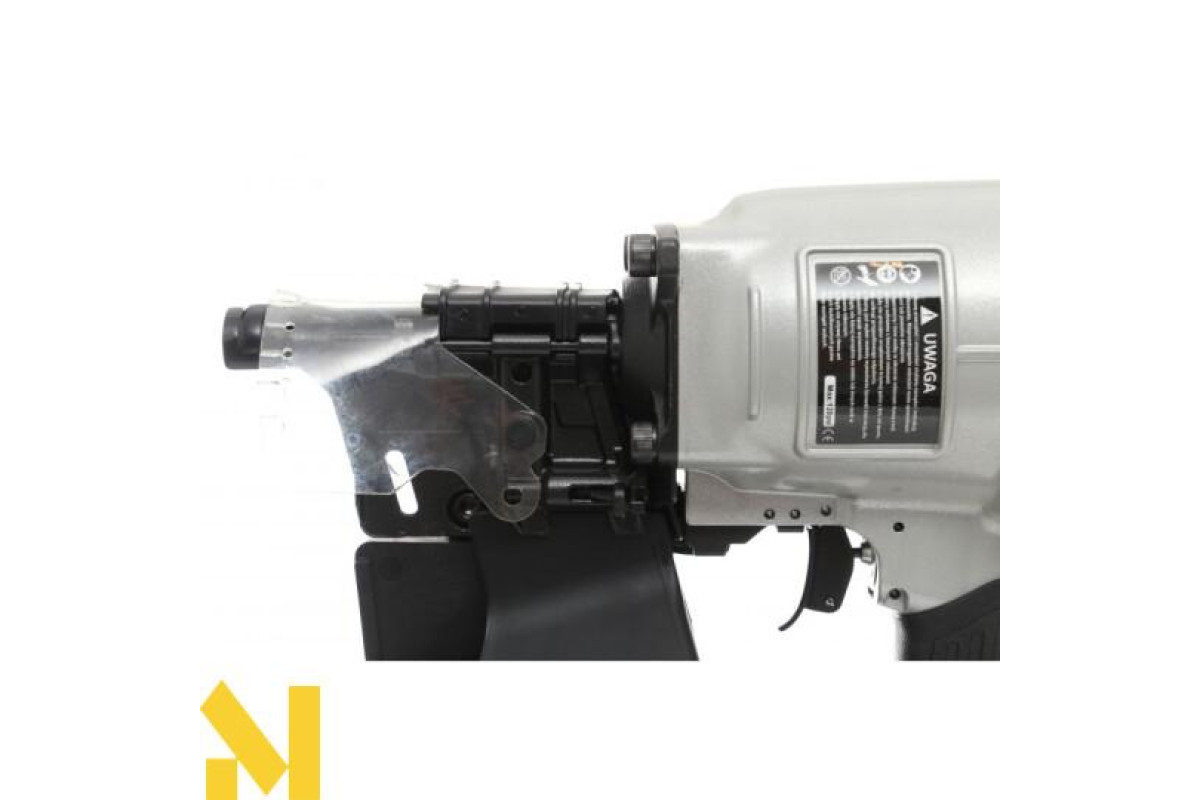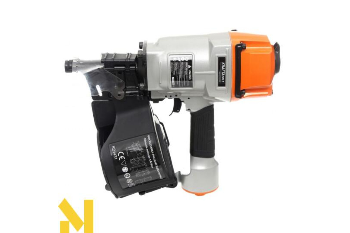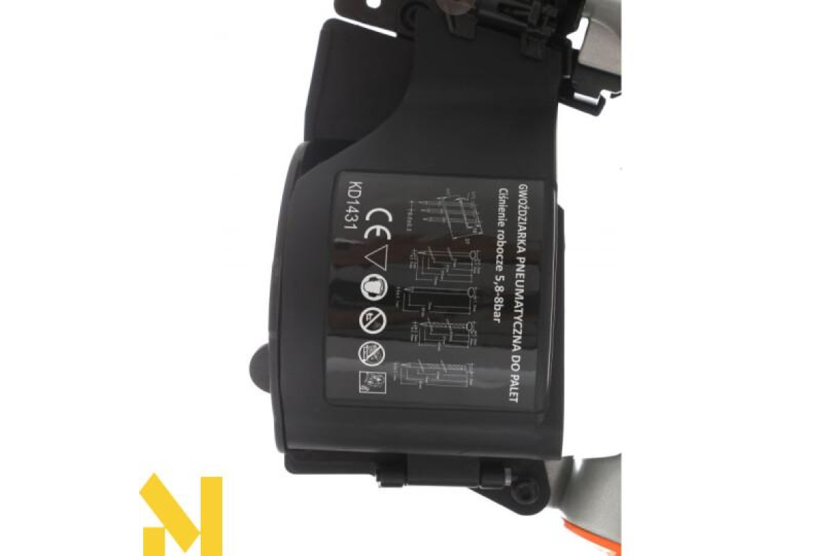 Професійний барабанний цвяхозабійник для цвяхів довжиною від 50 до 83 мм. Корпус із литого під тиском сплаву на основі магнію. Має обертову насадку для випуску повітря, запобіжник, що захищає від випадкового включення, систему бічного завантаження, протектор і пилозахисну кришку. Використання широкого посиленого стовбура запобігає занадто швидкому стиранню.
