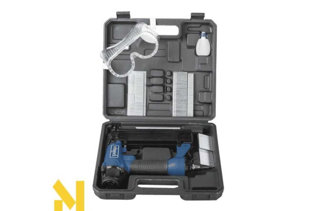 Легкість і практичність: пістолет для скоб і цвяхів зручний у використанні і важить 1,2 кг. Крім того, він так само практичний, оскільки являє собою комбінований пристрій 2 в 1 (затискний пристрій для стисненого повітря і пневматичний цвяхозабивач).
