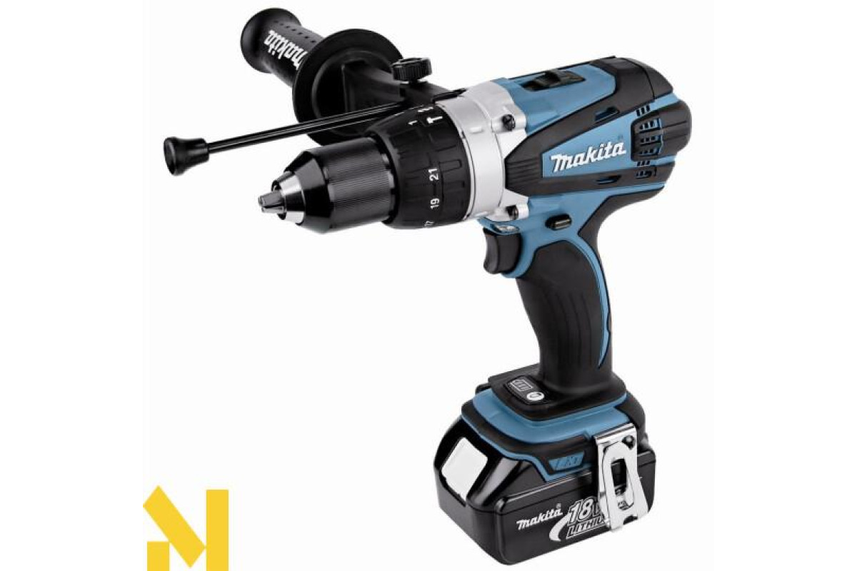 Ударний дриль-шуруповерт Makita BHP458RFE (DHP458RFJ) - це мультифункціональний інструмент. Він здатний не тільки затягувати кріпильні елементи в тверді і м'які матеріали, але й свердлити в деревині, сталі. Передбачена також можливість регулювання моменту обертання, залежно від м'якого або жорсткого затягування. Для цих цілей є два режими: 91, 58 мм.