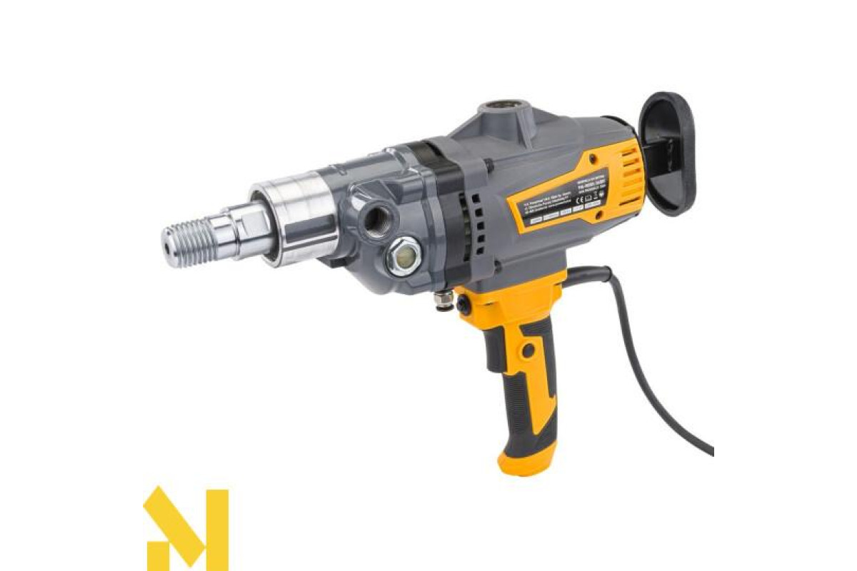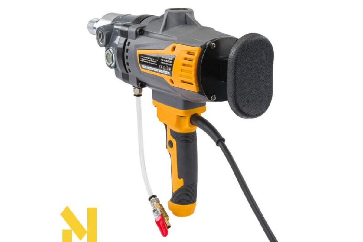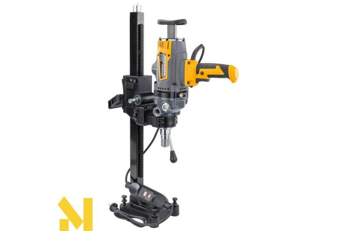Установка алмазного буріння Powermat потужністю 2600 Вт - це інструмент, призначений, зокрема, для мокрого свердління, що робить її безпечнішою у використанні та ефективнішим порівняно з конкуруючими моделями. Швидкість обертання досягає 1 500 обертів на хвилину, а свердло встановлюється на патрон діаметром 1 ¼ дюйма. Це дозволяє свердлити отвори максимальним діаметром 195 мм. Дриль POWERMAT - це довговічний інструмент, який забезпечує швидкі результати в складних умовах. Практичні аксесуари, такі як штатив, плечова опора та кріпильні гвинти, входять до комплекту поставки.