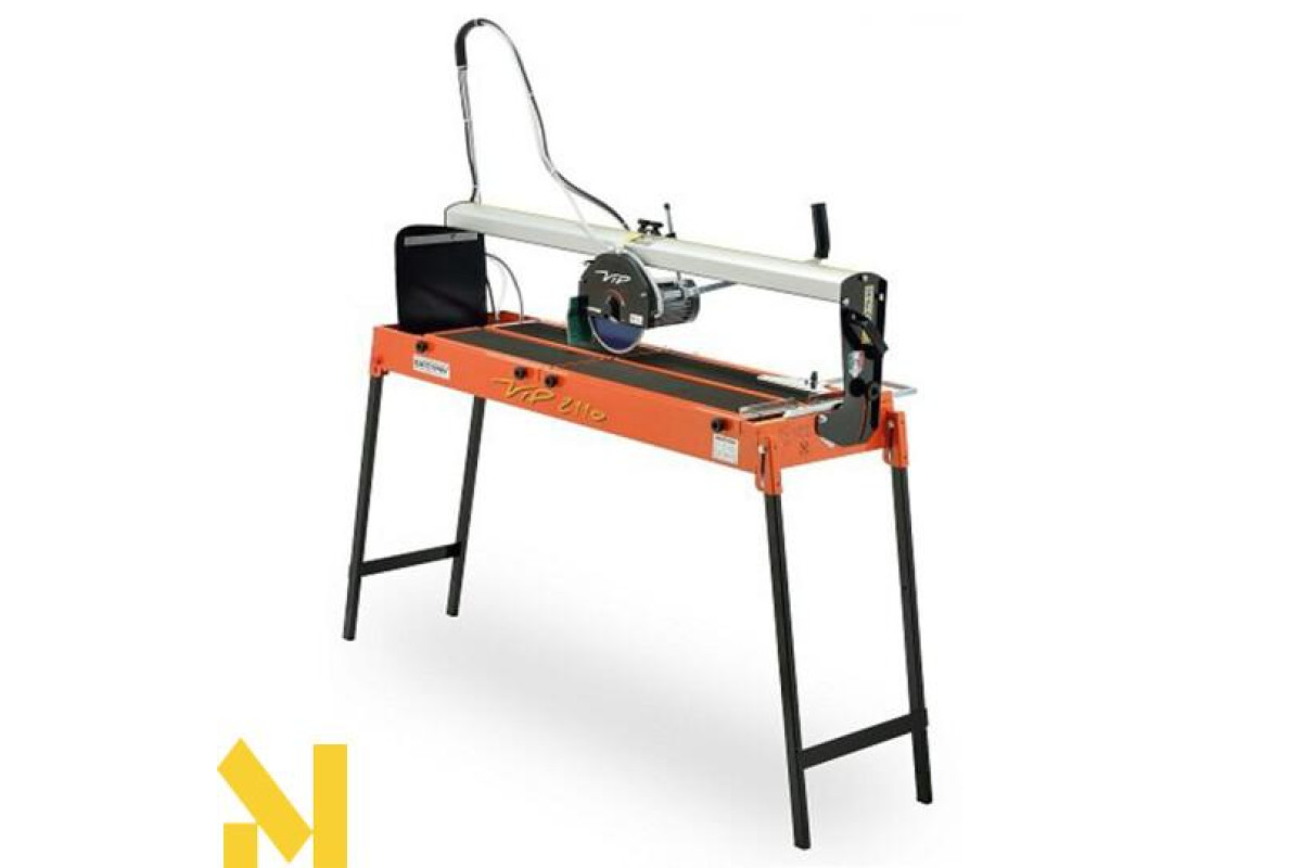Battipav VIP 2110 - надійний верстат для порізки керамічної і кам'яної плитки, як по прямій, так і під кутом 45 °. Обладнаний потужним двигуном і довгим столів для використання верстата в професійних цілях.