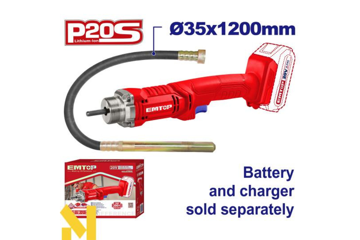 Вібратор для бетону акумуляторний EMTOP ECVL202301