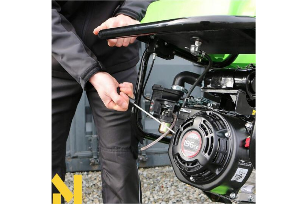 - Спеціальний шланг для зливу моторного масла полегшує випорожнення двигуна перед тривалою зупинкою або транспортуванням машини.