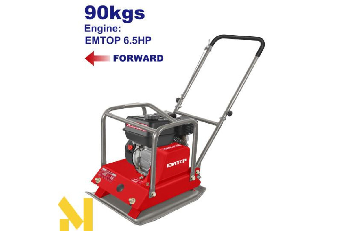 Віброплита бензинова EMTOP EPCT659002 упакована в картонну коробку.
