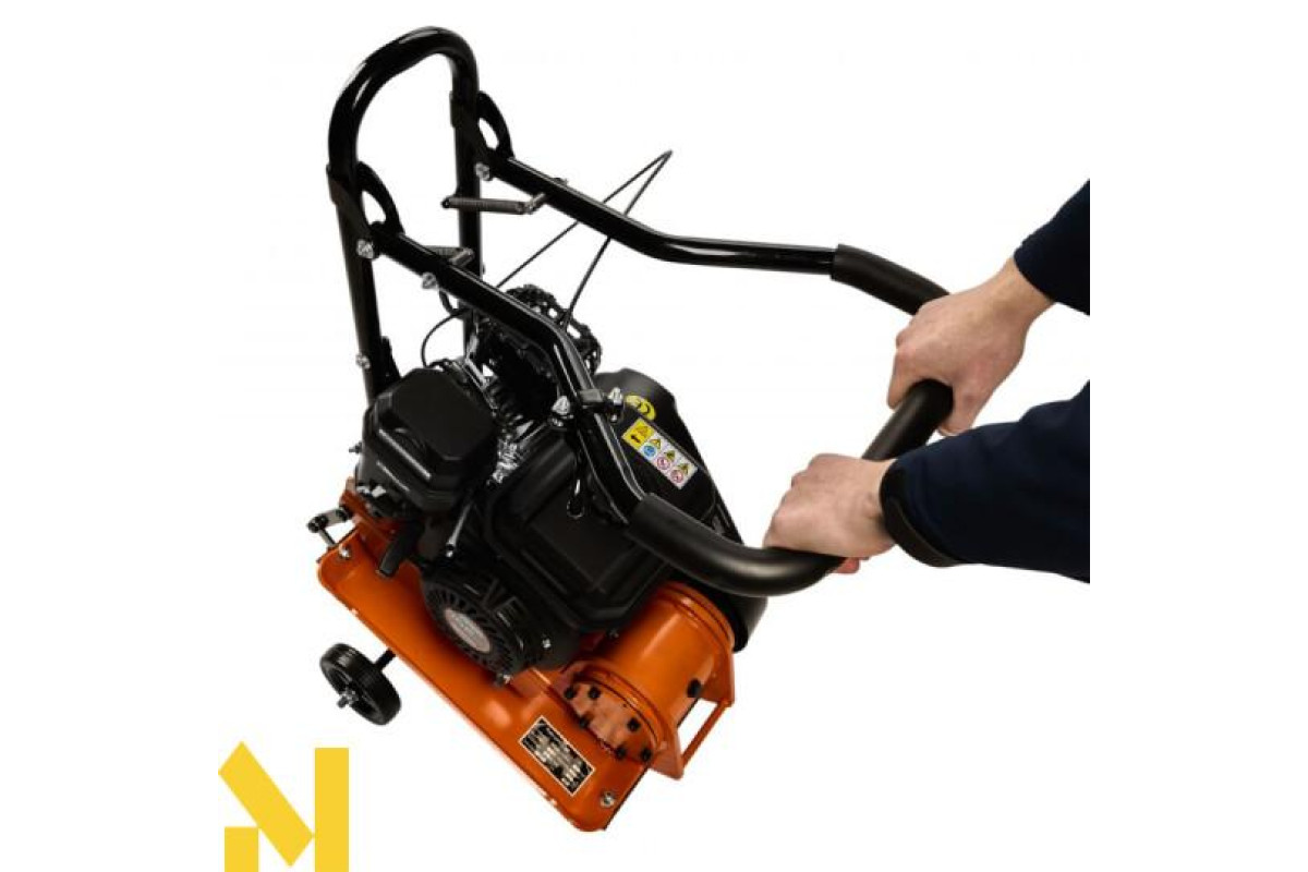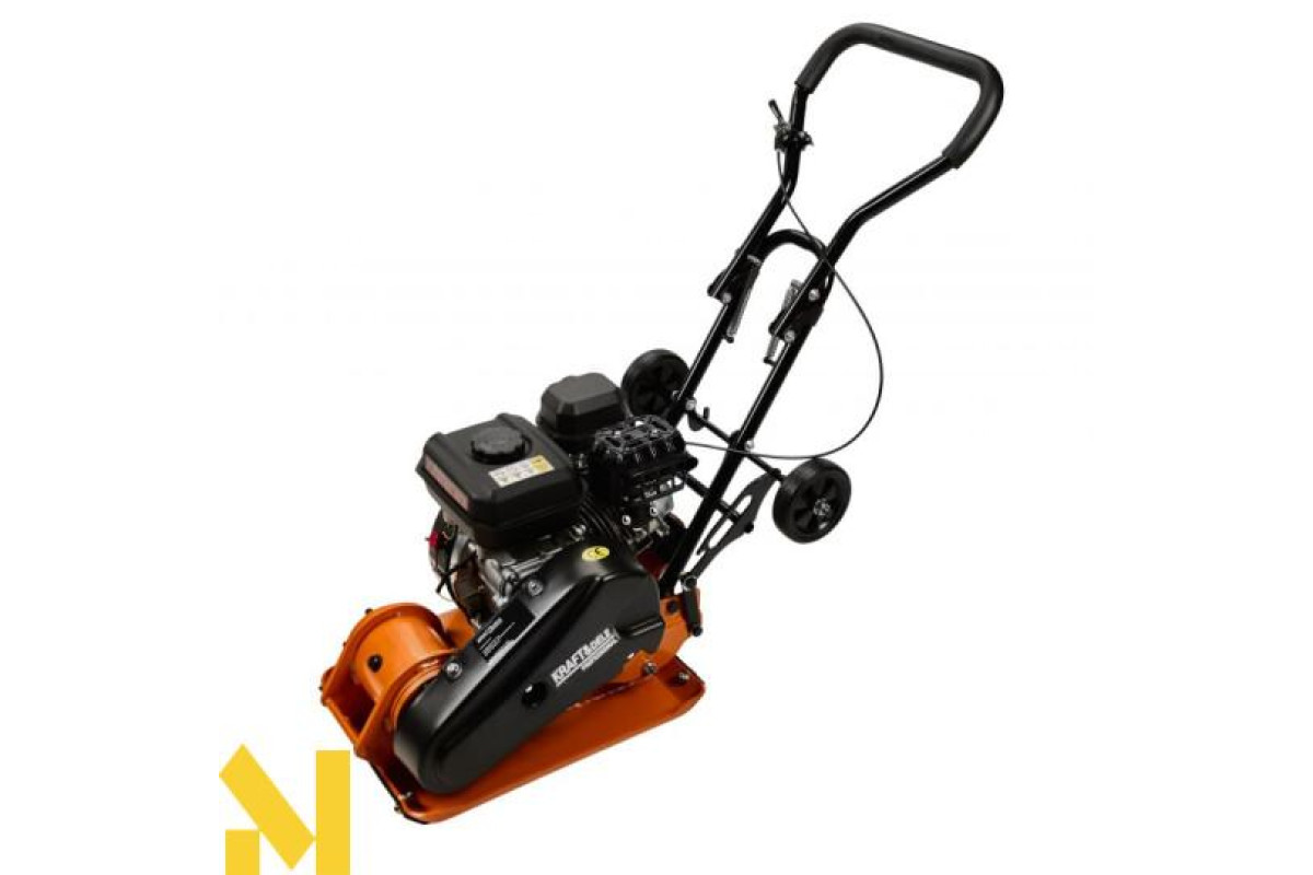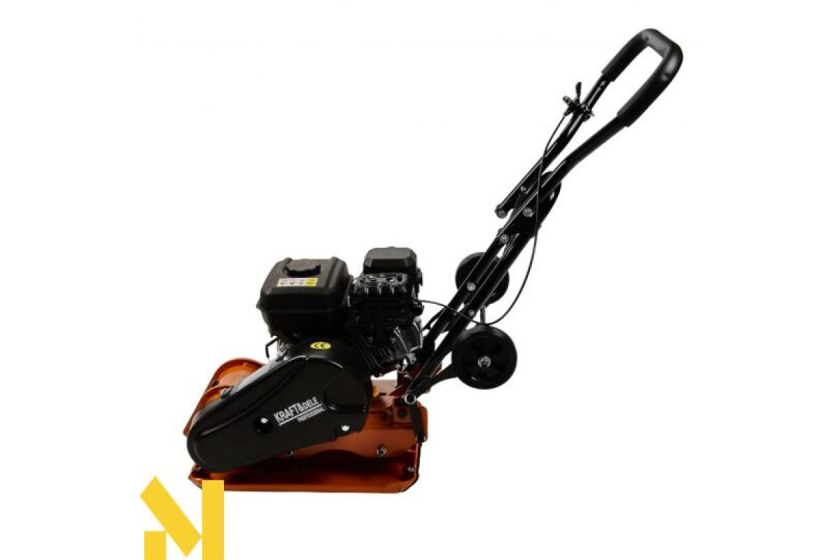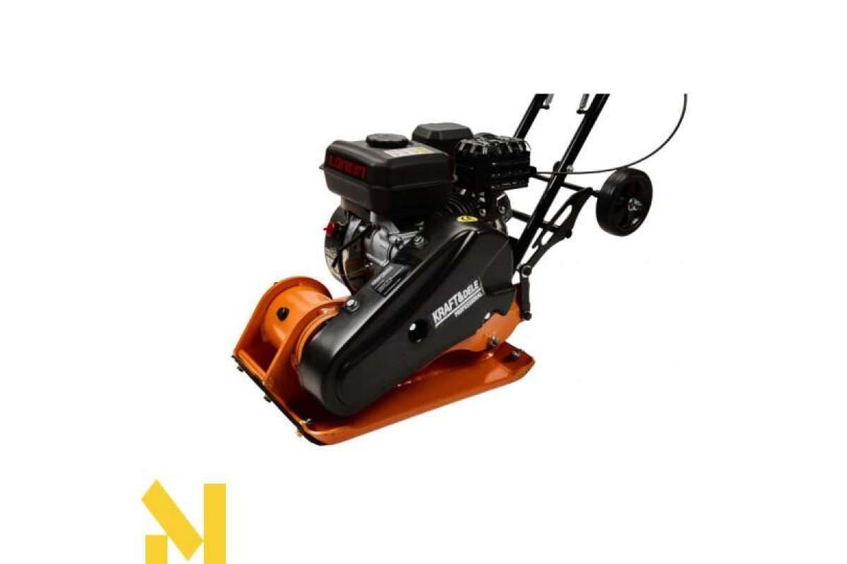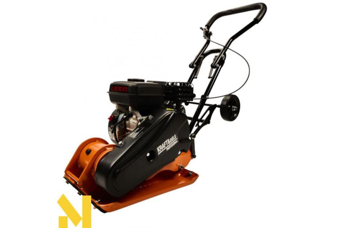 Професійна віброплита Kraft&Dele KD1197 - це пристрій для ущільнення землі для отримання рівної поверхні. Принцип роботи пристрою заснований на передачі коливань віброплитою, яка рухається завдяки енергії, що виробляється двигуном. Пристрій призначений для вирівнювання ґрунтового покриття, в тому числі вирівнювання ґрунту та оздоблення асфальтового покриття доріг.