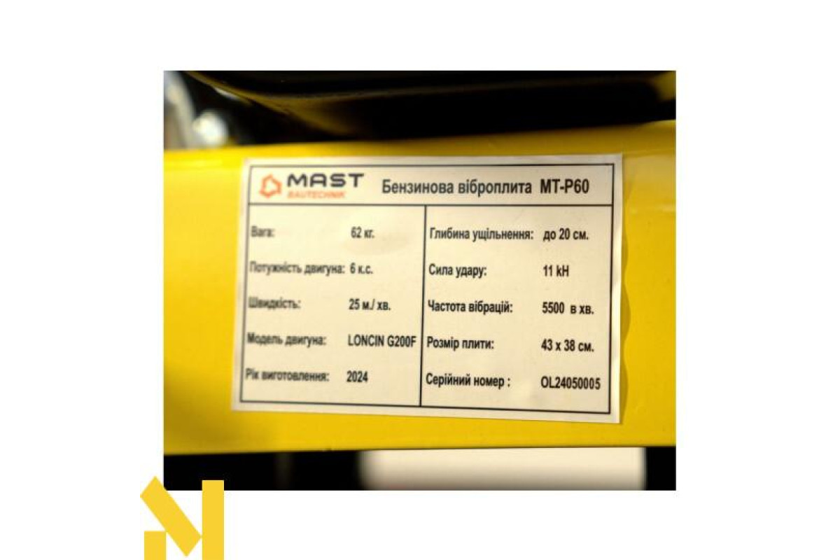 Обладнання виготовлене з високоякісних, зносостійких матеріалів, що гарантує тривалий термін його служби. Компактний розмір, невелика вага та ергономічна ручка для керування забезпечують зручність використання віброплити.