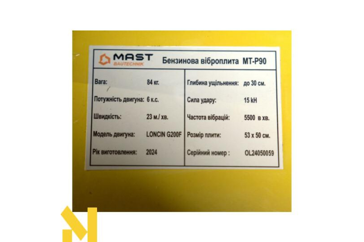 4- тактний бензиновий двигун LONCIN з потужністю 4,4 кВт і повітряним охолодженням забезпечує продуктивність роботи. Робоча швидкість 23 м/хв оптимальна для якісного та зручного опрацювання поверхні. Віброплита виконує 5500 ударів за хвилину, глибина ущільнення становить 300 мм. Розмір плити - 530х500 мм.