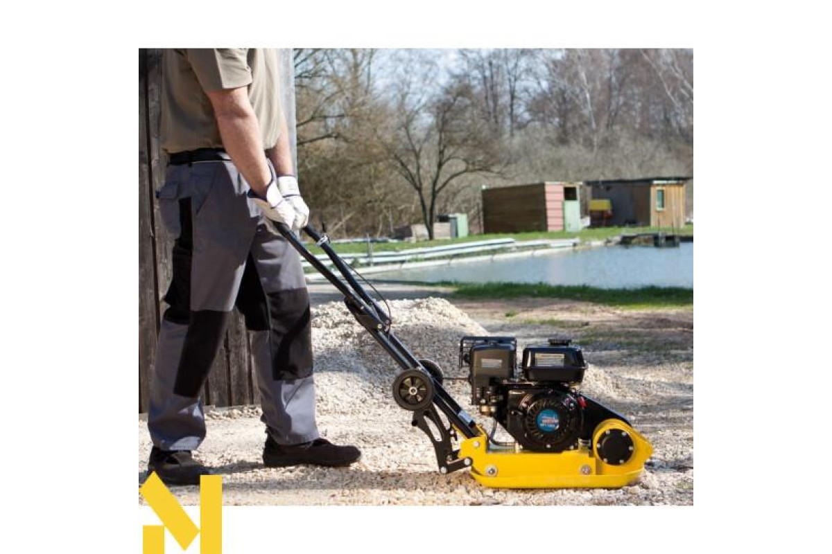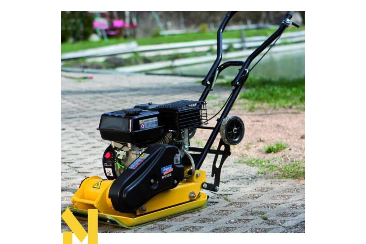 Для зручності переміщення, дана виброплита оснащена колесами, які забезпечують легке пересування плити з одного місця в інше. Пристрій має бензиновий тип двигуна, за рахунок якого його можна використовувати в будь-якому віддаленому місці, не маючи залежність від електромережі.