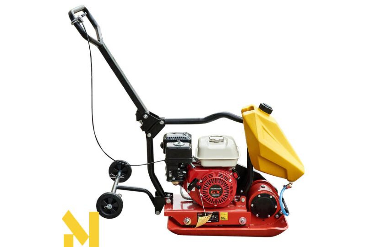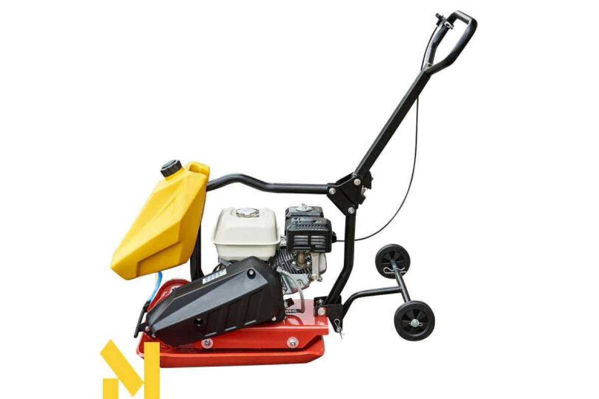 З’ємна ручка і вузол для підйому у вигляді рами над двигуном дає змогу без проблем транспортувати пристрій. Також для зручності транспортування ця вібраційна плита обладнана транспортувальними колесами.