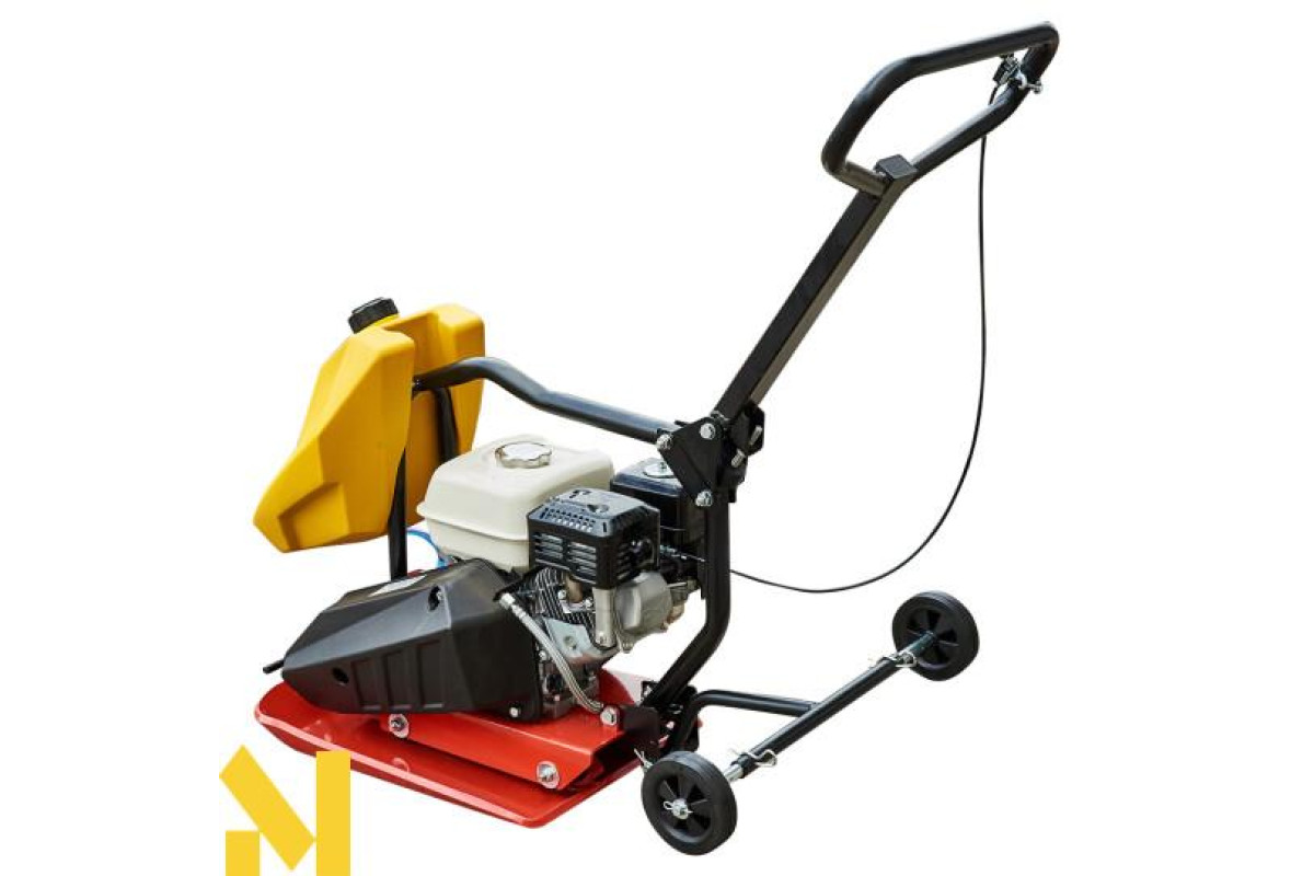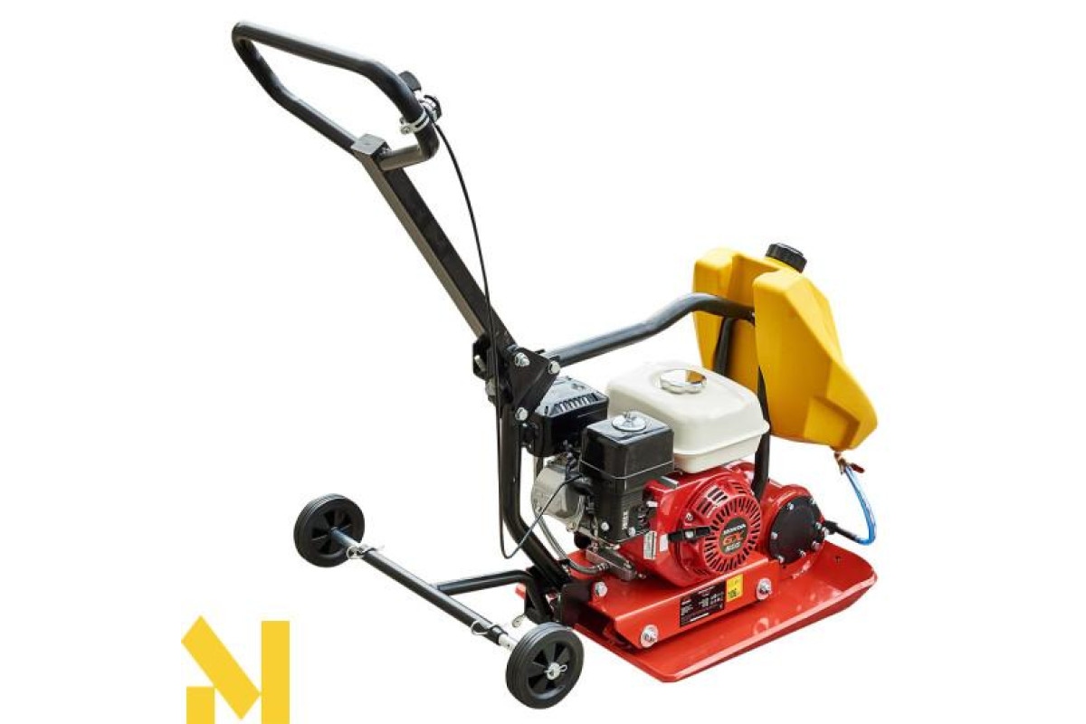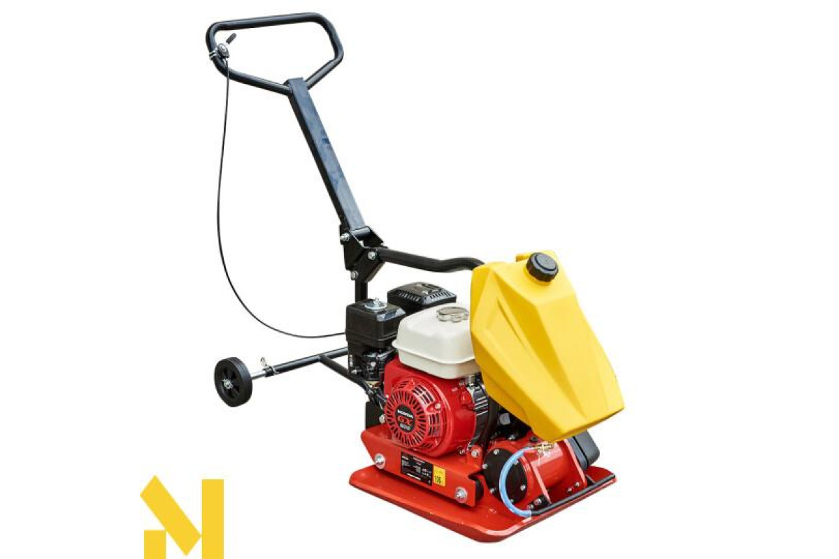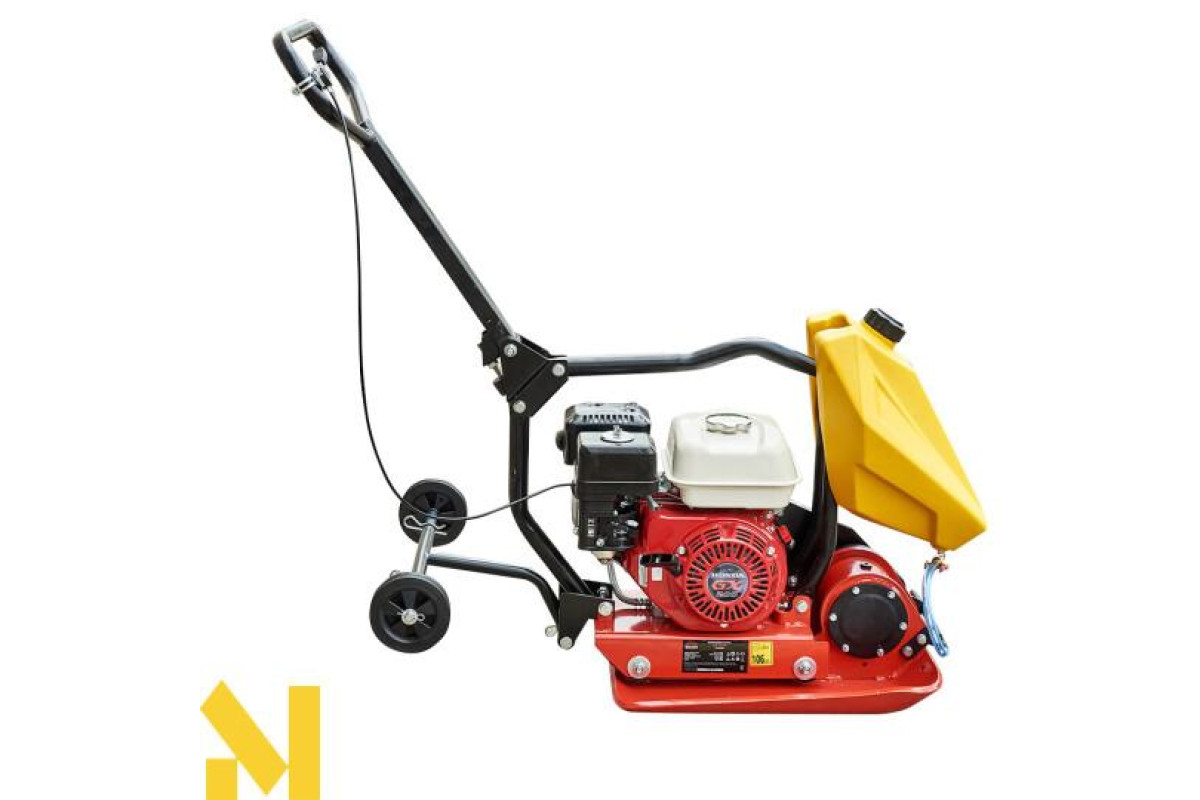З’ємна ручка і вузол для підйому у вигляді рами над двигуном дає змогу без проблем транспортувати пристрій. Також для зручності транспортування ця вібраційна плита обладнана транспортувальними колесами.