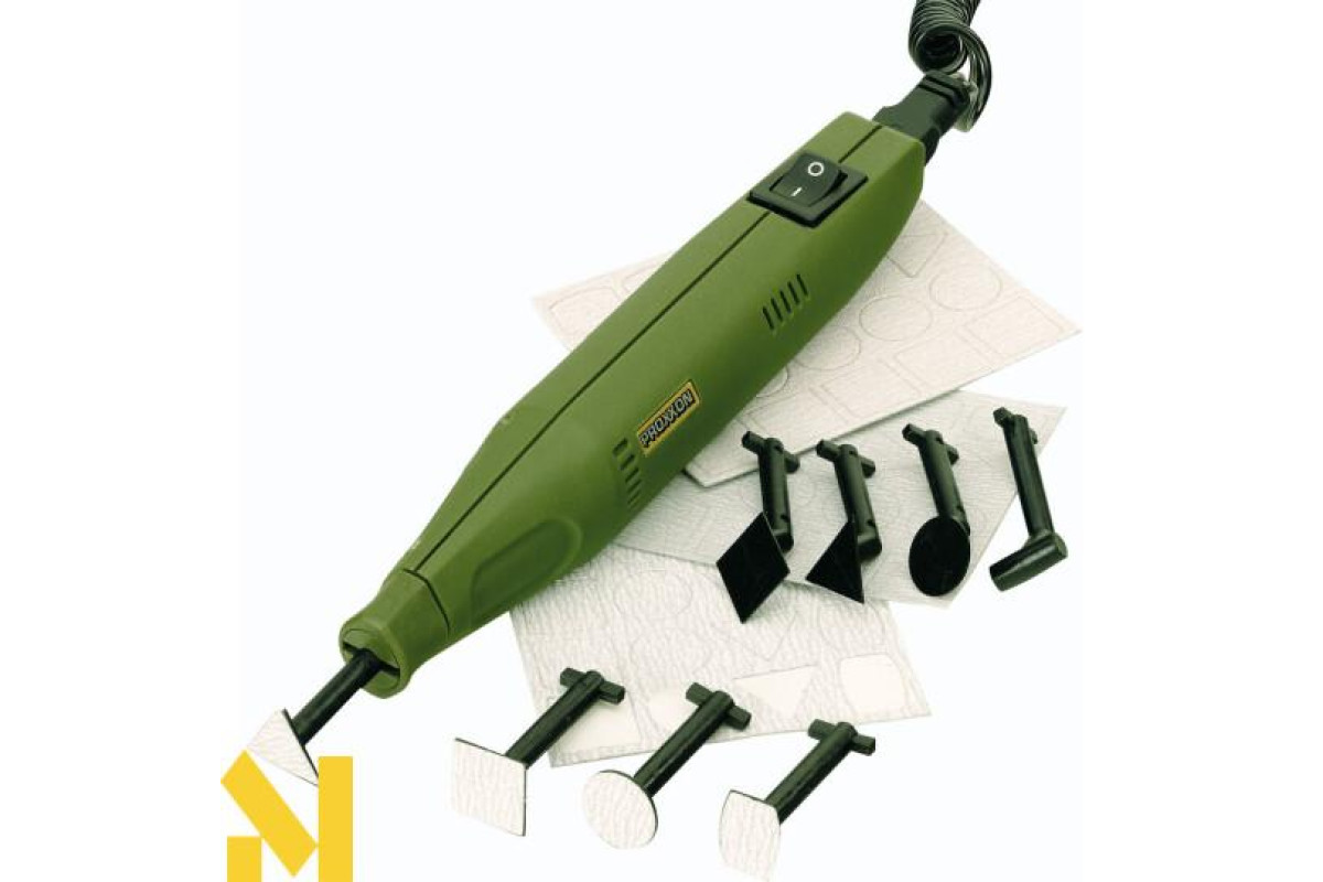 Ідеальна для важкодоступних поверхонь, пазів і вузьких кутів. З лінійним рухом шліфувальної поверхні (на противагу обертального або орбітального). Спеціальний двигун постійного струму. Висока якість збірки апарату значно збільшує термін служби інструменту. Шліфувальна машинка PS 13 використовується для виконання найтоншої роботи в області моделювання, в ювелірному і оптичному ремеслі, в декоративній обробці дерева і металу. Може використовуватися практично для будь-якого матеріалу. Корпус з посиленого скловолокном поліаміду. Для підключення необхідний адаптер мінімум на 1А при 12-18 в постійного струму. Рекомендуємо застосування трансформаторів фірми PROXXON типу NG 2 (E) або NG 5 (E).