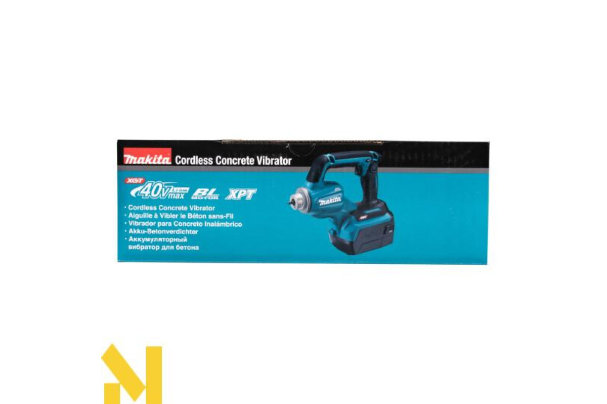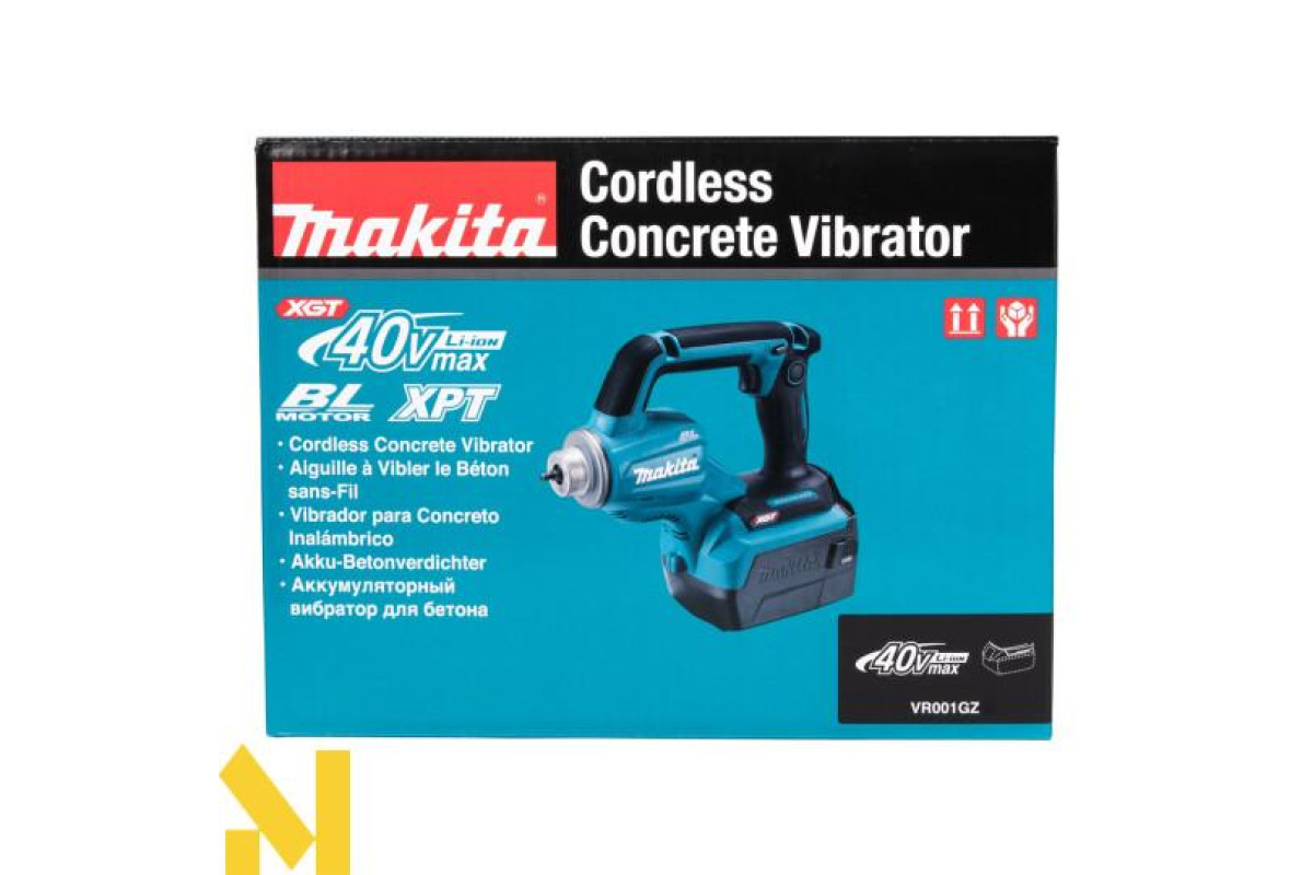 Акумуляторний бетоноущільнювач із живленням від батареї 40 В макс. XGT® Бетоноукладач VR001G XGT®, оснащений безщітковим двигуном постійного струму (BL) та технологією XPT (підвищена стійкість до пилу та вологи). Він має два режими роботи, щоб забезпечити широкі можливості використання інструменту. Працює із портативним блоком живлення PDC1200. Поставляється без гнучкого валу, акумуляторів та зарядного пристрою.