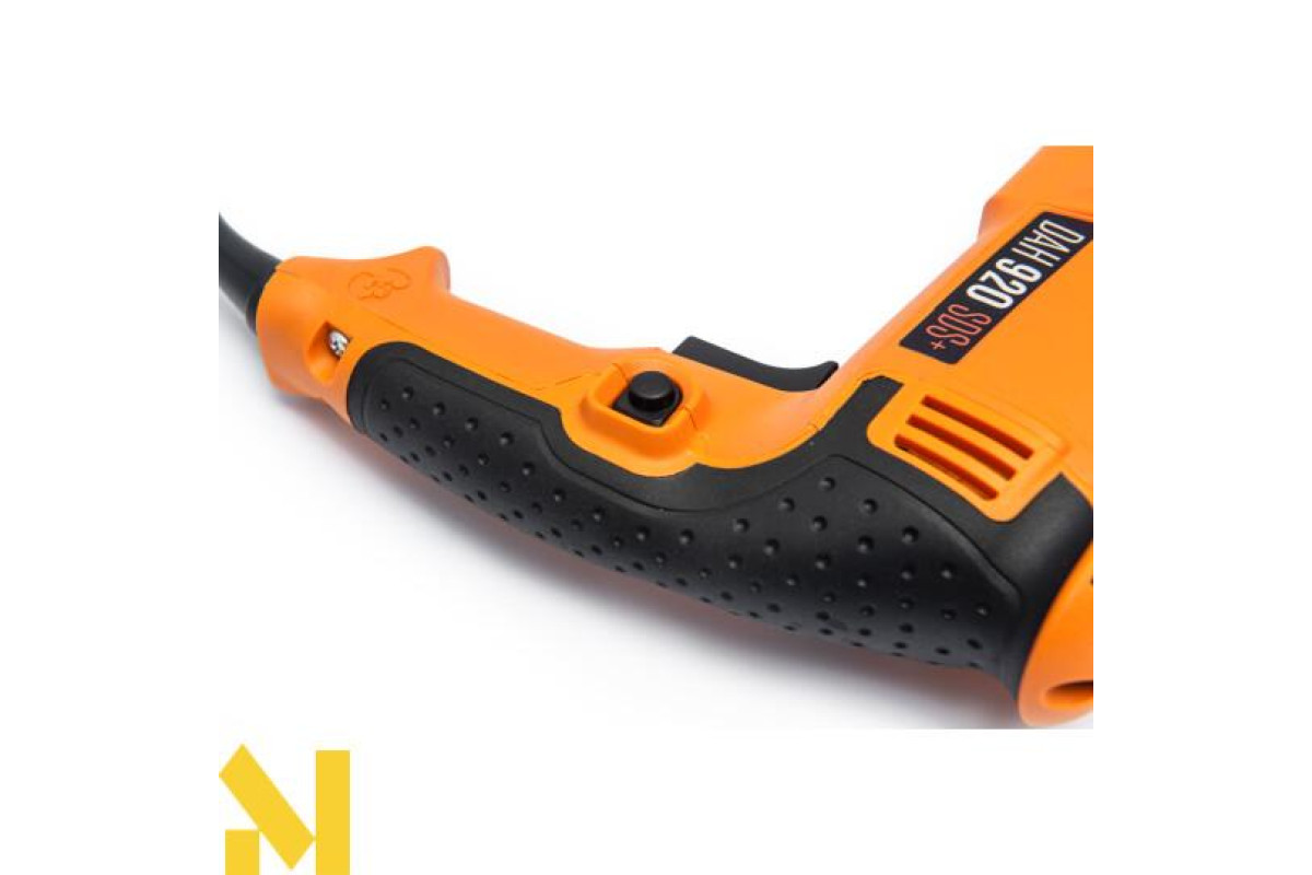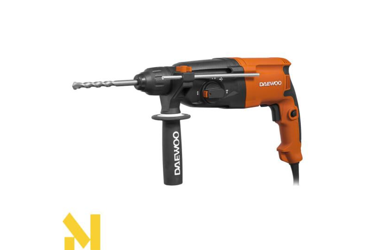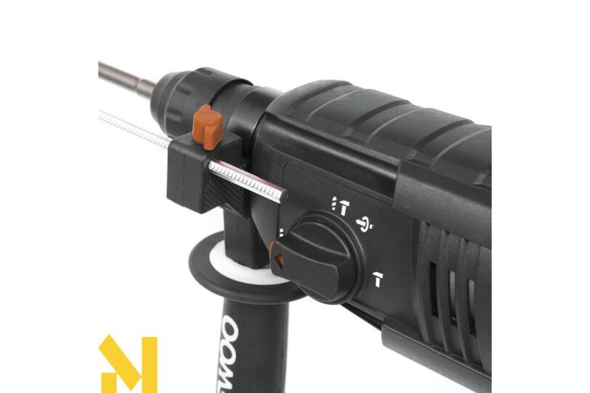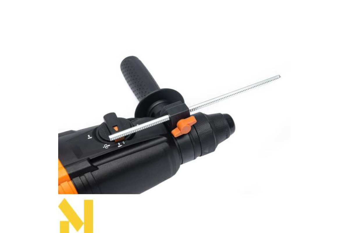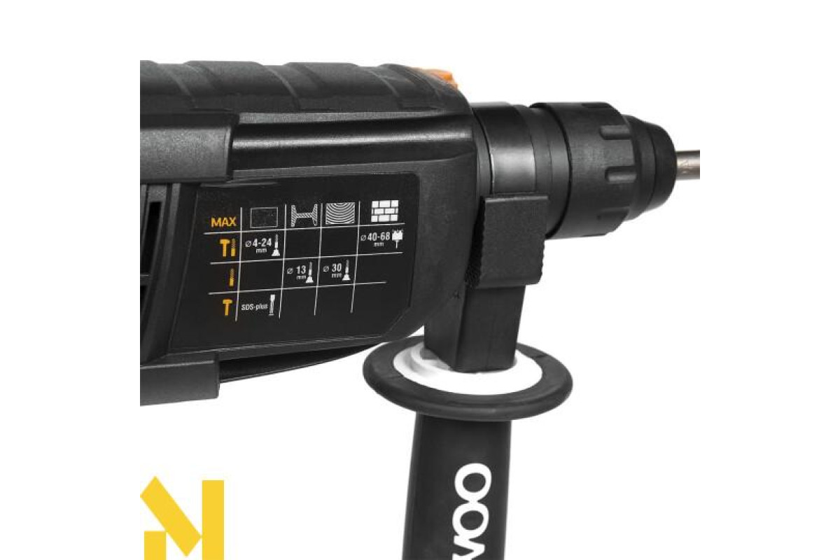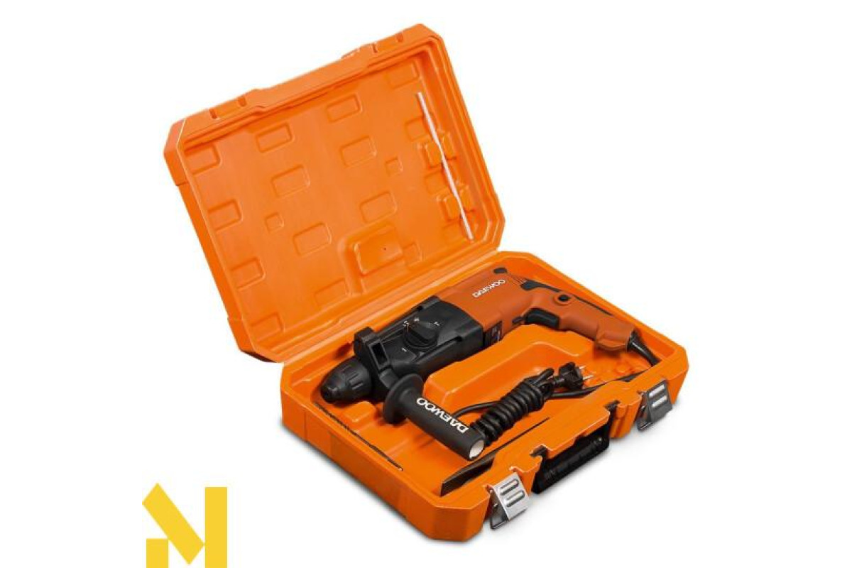 Ударний молоток для роботи з каменем, бетоном, цеглою та деревом. Інструмент має 4 режими роботи: свердління, свердління з ударом, довбання з фіксатором долота, довбання без фіксатора долота. У комплект молотка входить 3 дрилі, зубило, кирка, валіза для зберігання інструменту та аксесуарів.