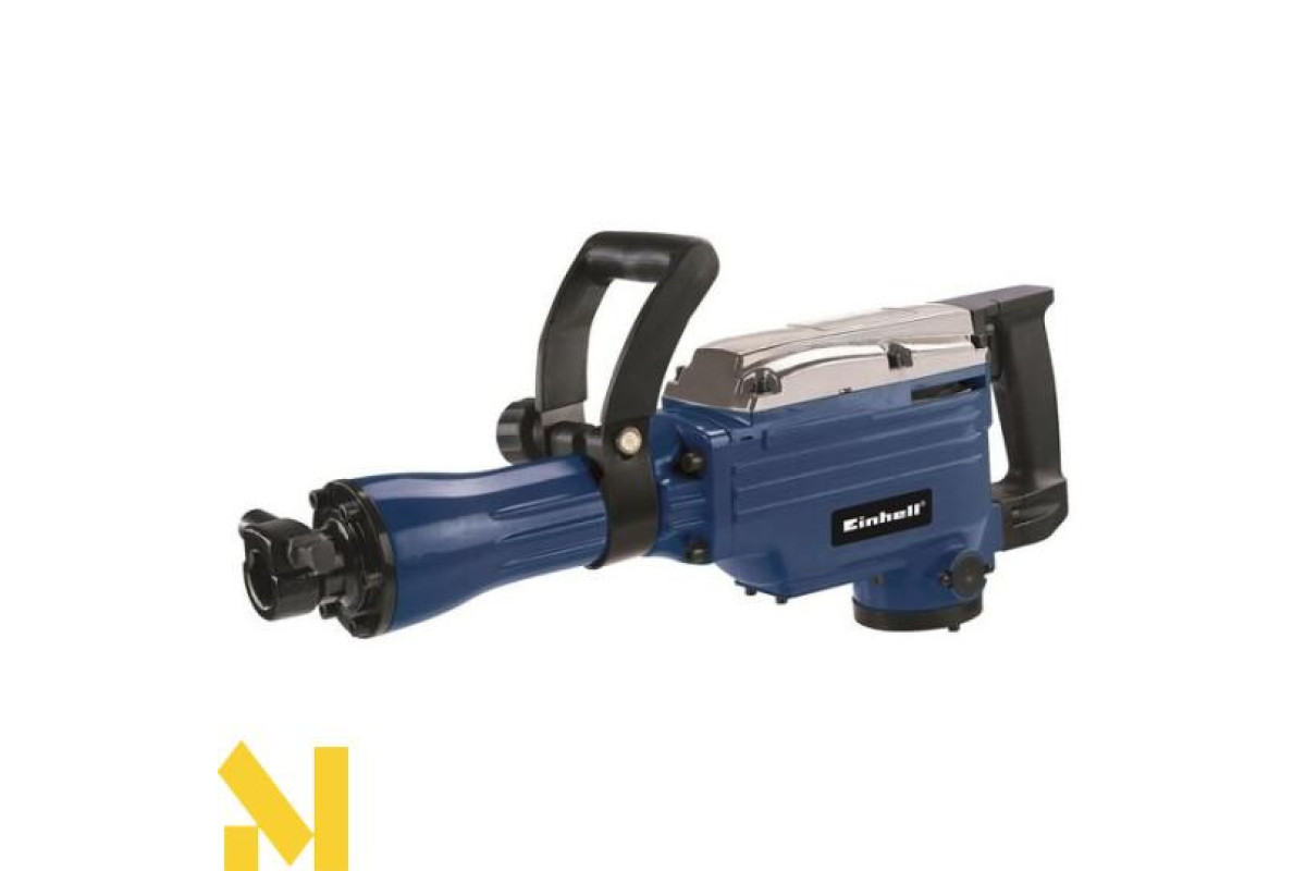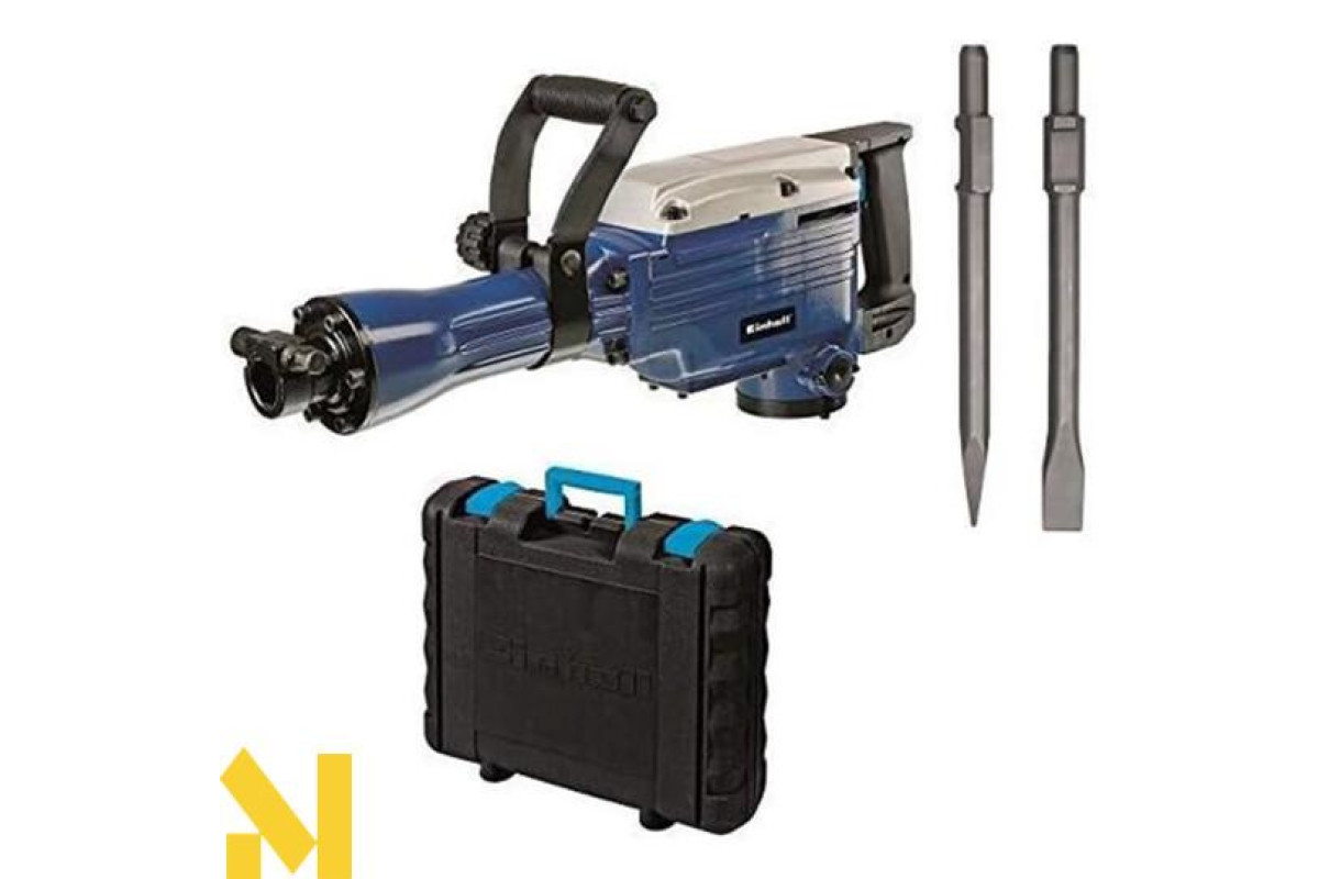 Відбійний молоток Einhell BT-DH 1600 переконує своєю безкомпромісною потужності на важких роботах з демонтажу і в будинку і саду. Фахівці цінують його як помічника, потужність 1600 Вт з силою удару 43 джоуля. Це дуже міцна машина має інструмент патроном SDS (шестикутник, 30 мм), який дозволяє змінити долото без інструментів. Регульована, ергономічна додаткова рукоятка BT-DH 1600 забезпечує надійну фіксацію. Інструмент поставляється з однією плоскою стамескою (L = 400 мм, W = 30 мм) і один загостреним долотом (L = 400 мм) для негайного використання. Відбійний молоток зберігається акуратно і готовий до використання в практичному для транспортування і зберігання кейсі.
