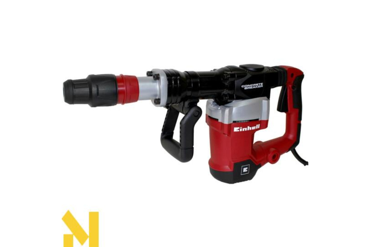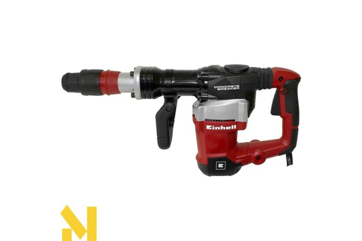 Відбійний молоток Einhell TE-DH 1027 - ручний мережевий ударний інструмент, застосовуваний для знесення стін і демонтажу старих дорожніх покриттів. Модель відбійного молотка Einhell TE-DH 1027 виконана у вигляді жорсткої і міцної конструкції, оснащена потужним електричним двигуном з потужністю 1,5 кВт і професійним міцним патроном SDS-Max для безінструментальної заміни долота, має вагу 10,8 кг, що по заявленим параметрам поміщає цю техніку в категорію тяжких перфораторів SDS-Max і відбійних молотків, що застосовуються у важких промислових умовах з інтенсивною і тривалим навантаженням. Відбійні молотки Einhell TE-DH 1027 в базовій комплектації мають другу знімну і поворотну рукоятку, яка використовується для безпечного захоплення інструменту в будь-якому положенні. Подовжений шнур живлення довжиною 4 м дозволяє відійти на досить велику відстань від електричної розетки. Надійна гумова ізоляція шнура дозволяє застосовувати відбійні молотки в умовах відсутності заземлення.