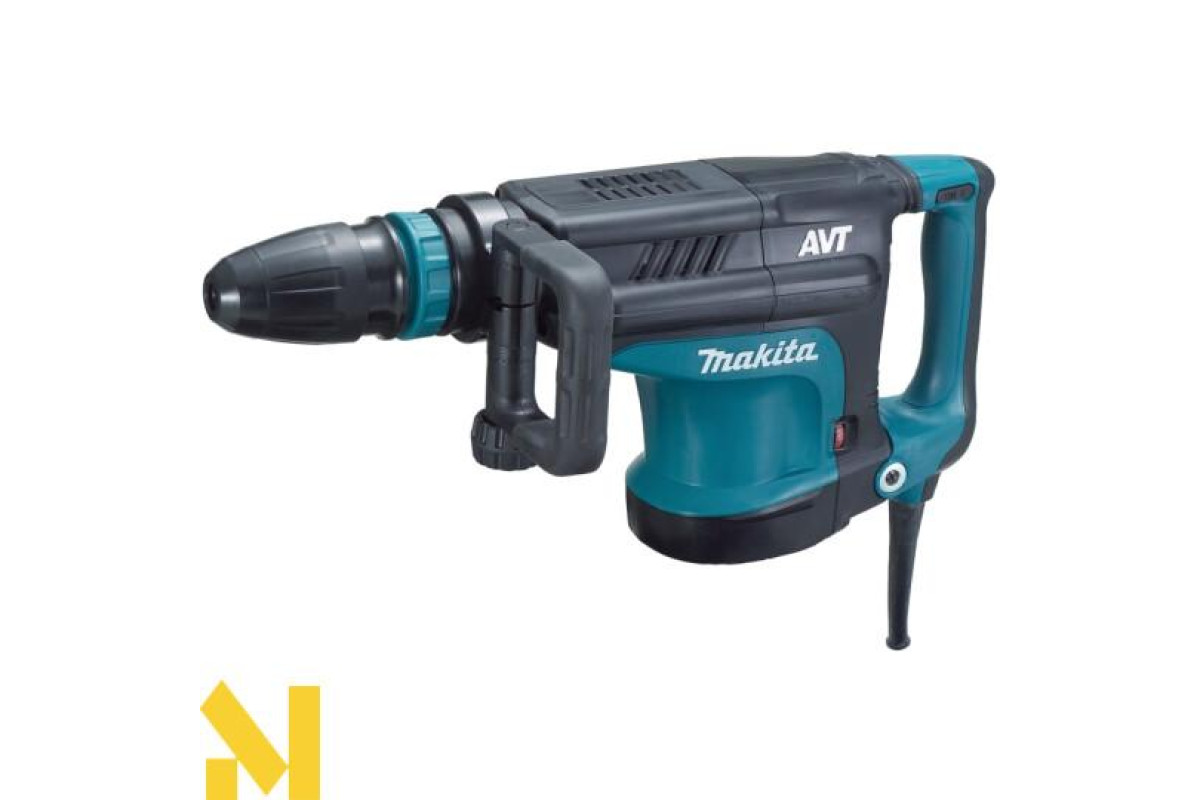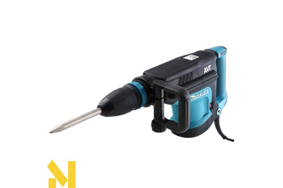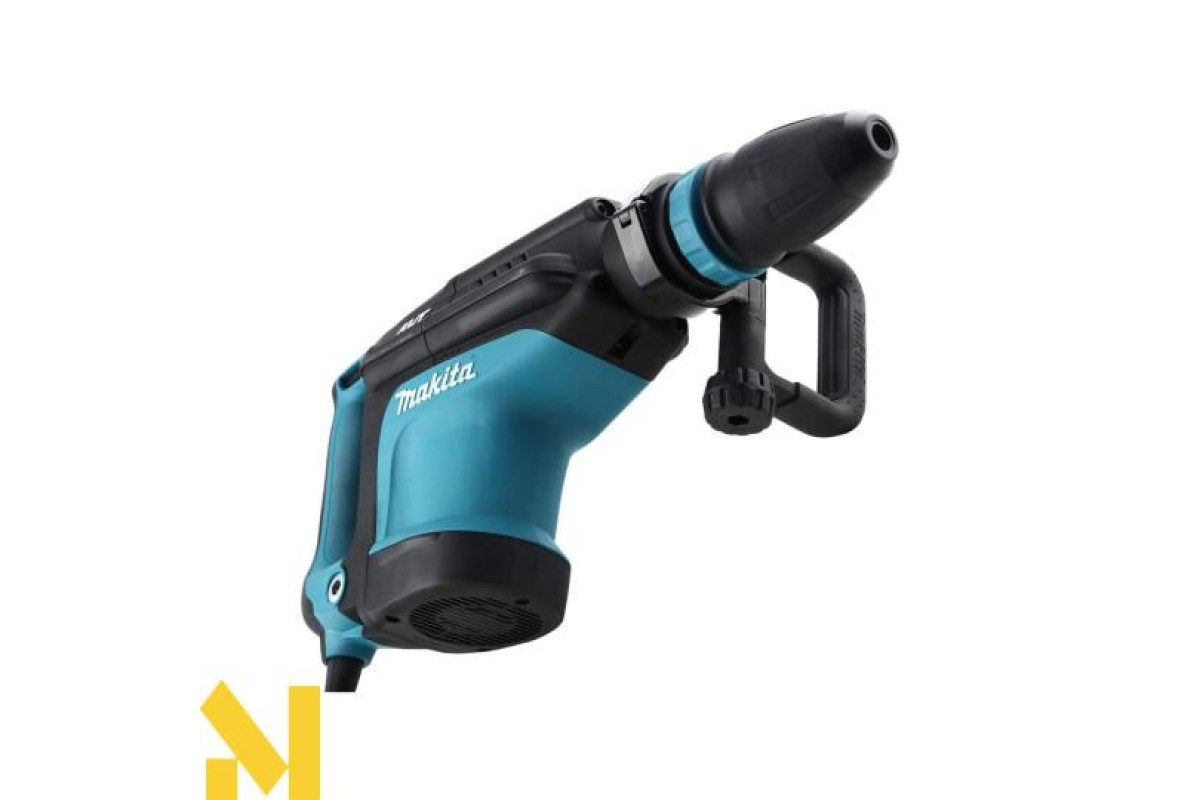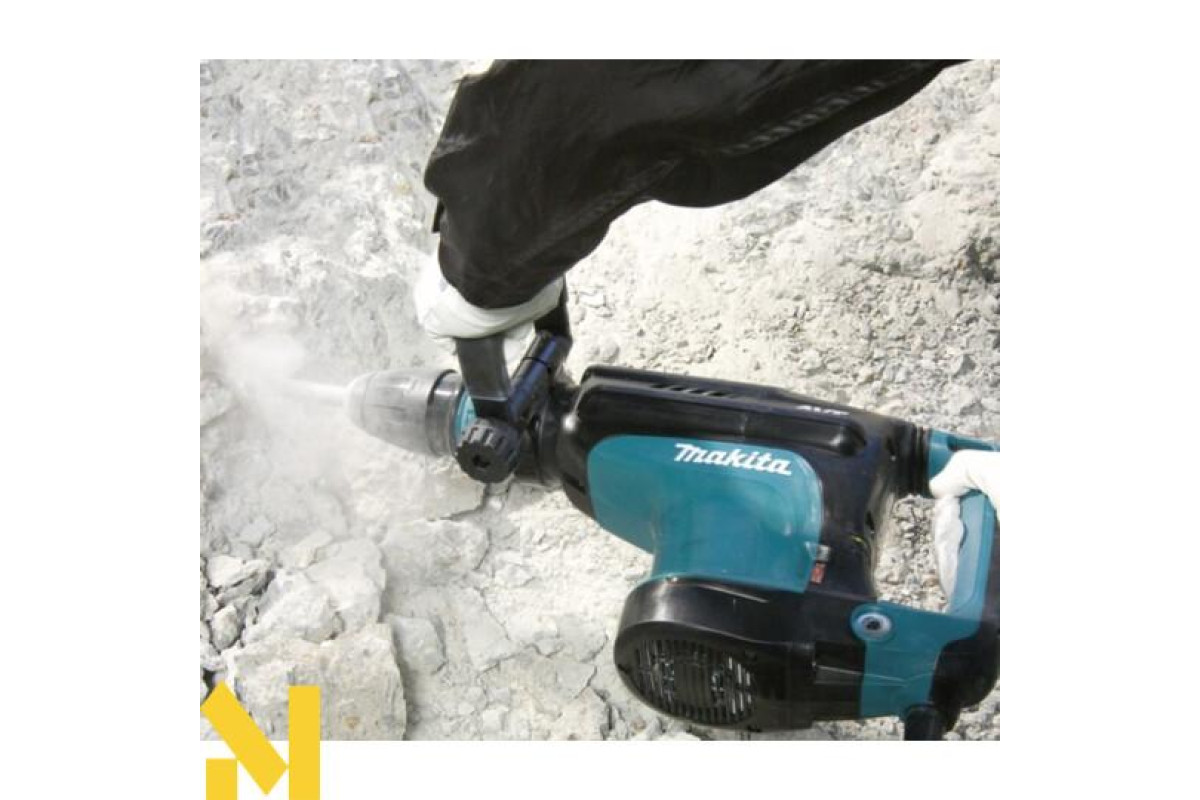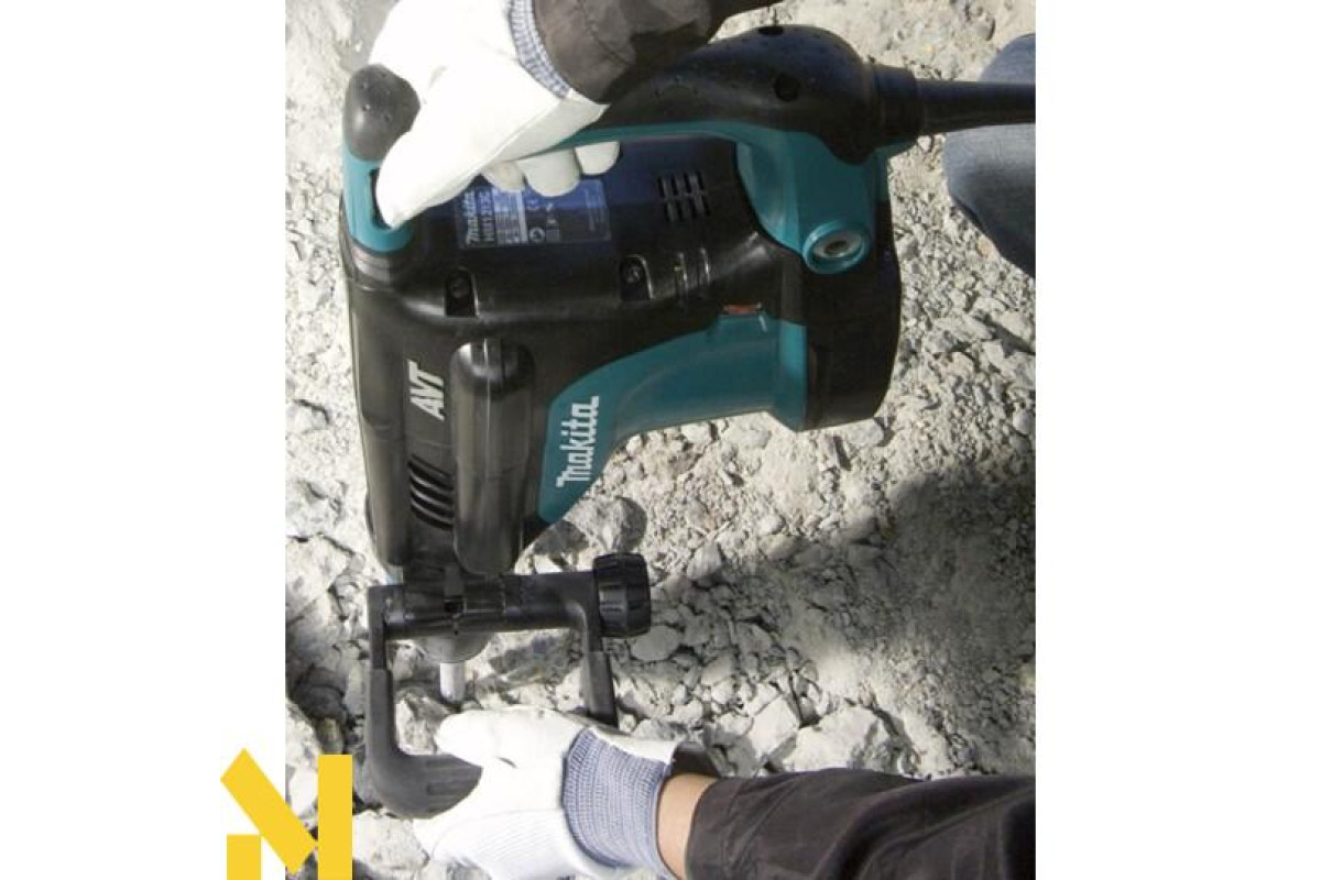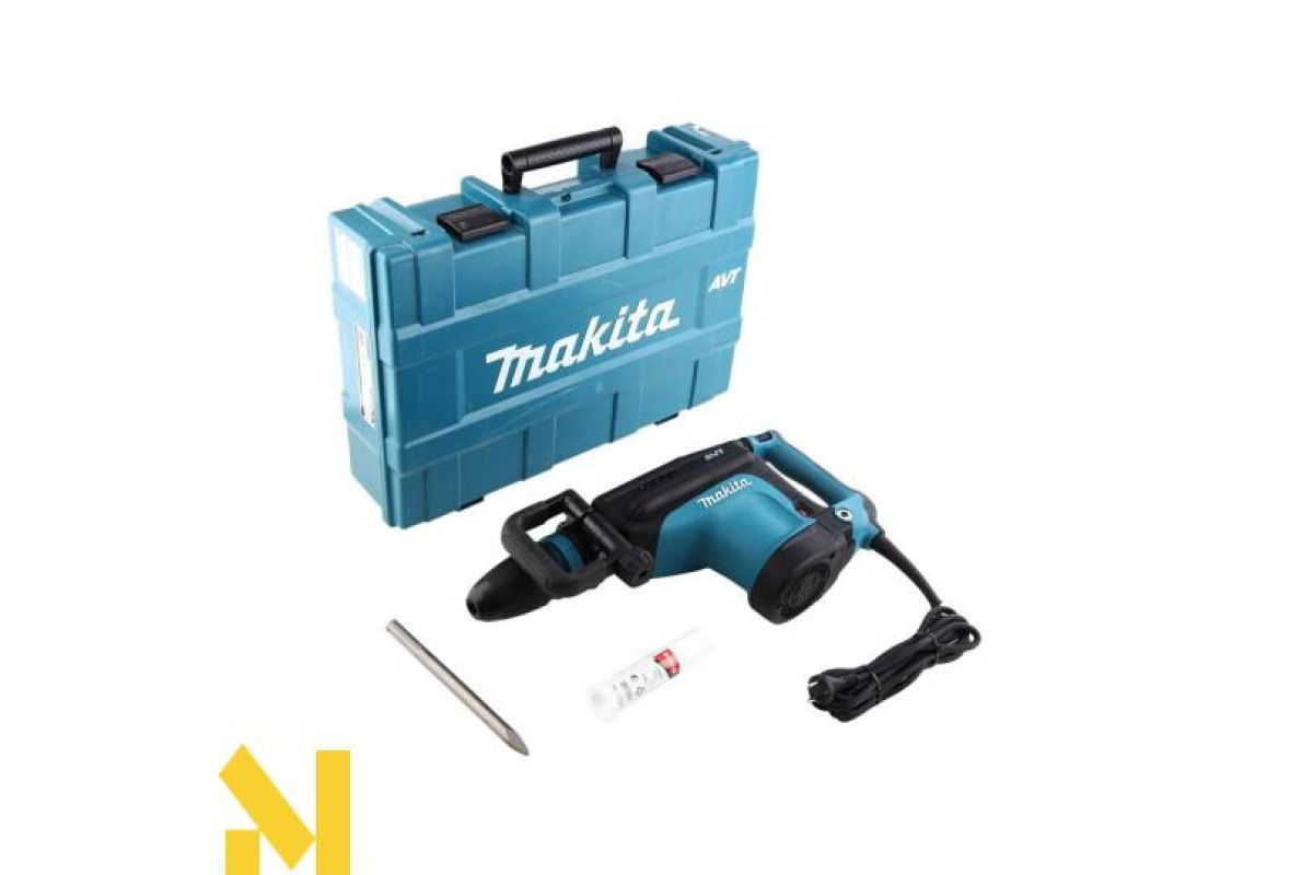 Відбійний молоток Makita HM1213С - це ідеальний інструмент для проведення будівельних робіт. Відбійний молоток Makita HM1213c оснащений швидкозажимний патроном SDS-MAX для швидкої і зручної зміни робочої оснастки, активної антивібраційною системою і володіє значною силою удару. Makita HM1213c має 12 можливих кутових позицій зубила з інтервалом 30 °, що забезпечує найменшу стомлюваність користувача при різних положеннях. Кількість ударів в хвилину регулюється електронною системою і дозволяє зручно працювати з матеріалами різної щільності. Ергономічна D-подібна ручка гасить вібрацію.
