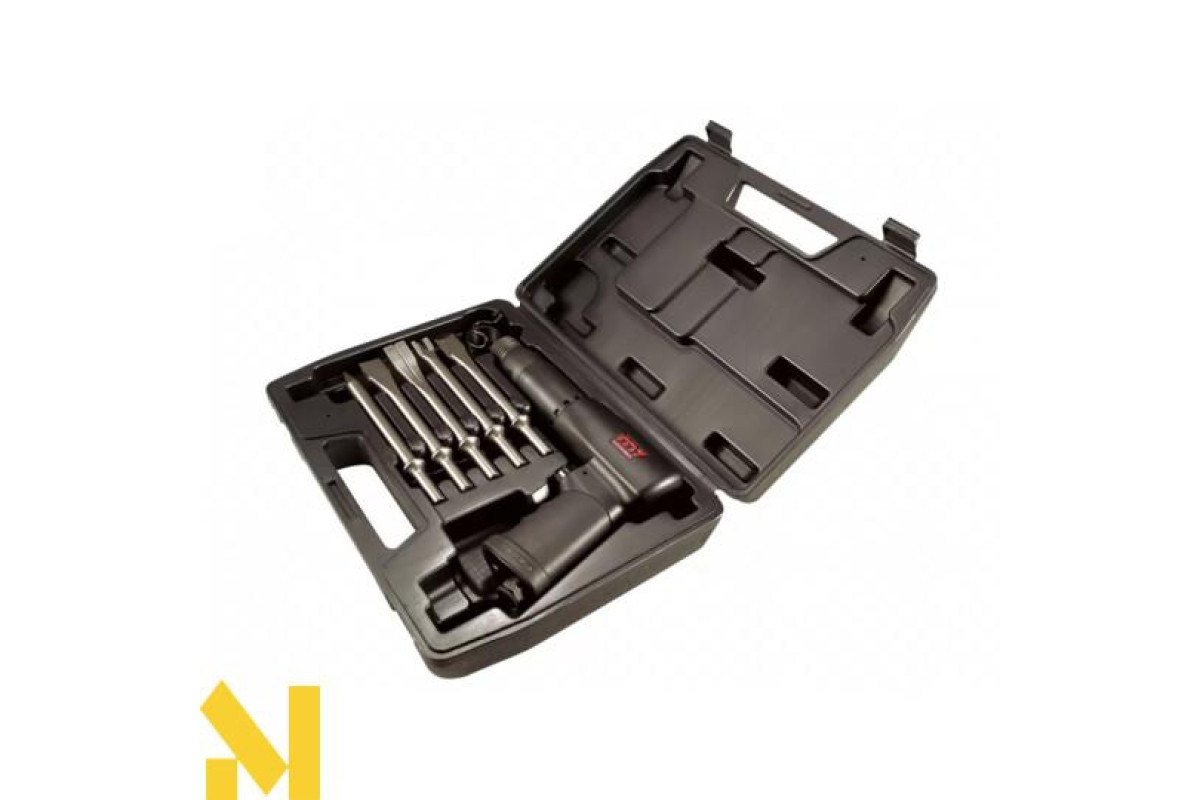 Пневмодолото Mighty Seven SC-0617c - пневматичний інструмент для довбання пазів, отворів, швидкого видалення кріпильних елементів. Представлена модель поставляється в зручному пластиковому кейсі разом з 5 зубилами.