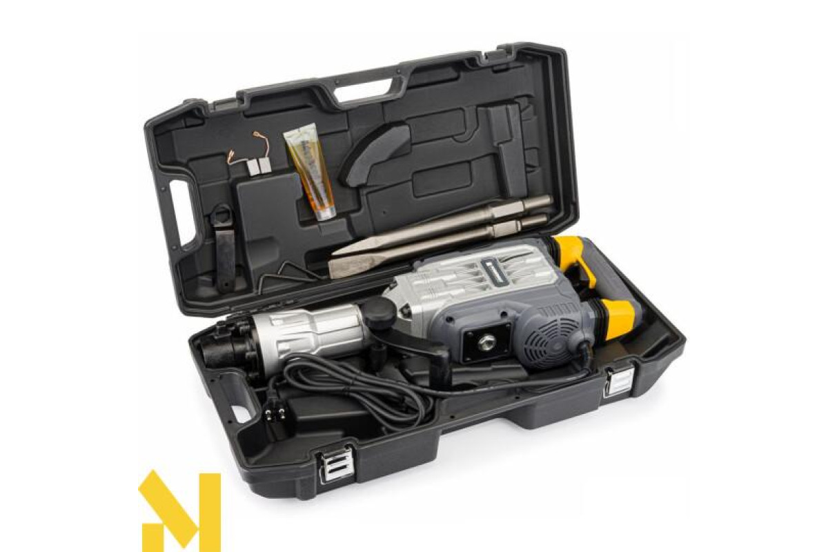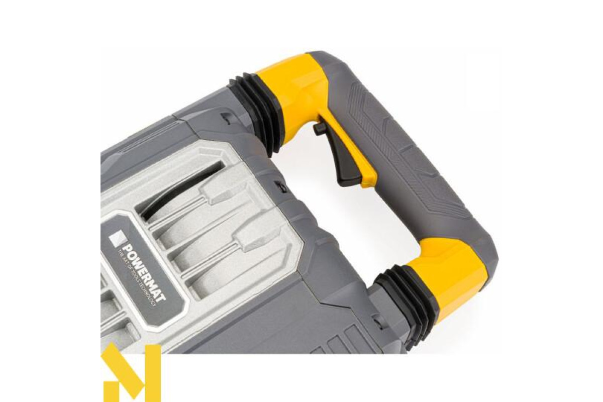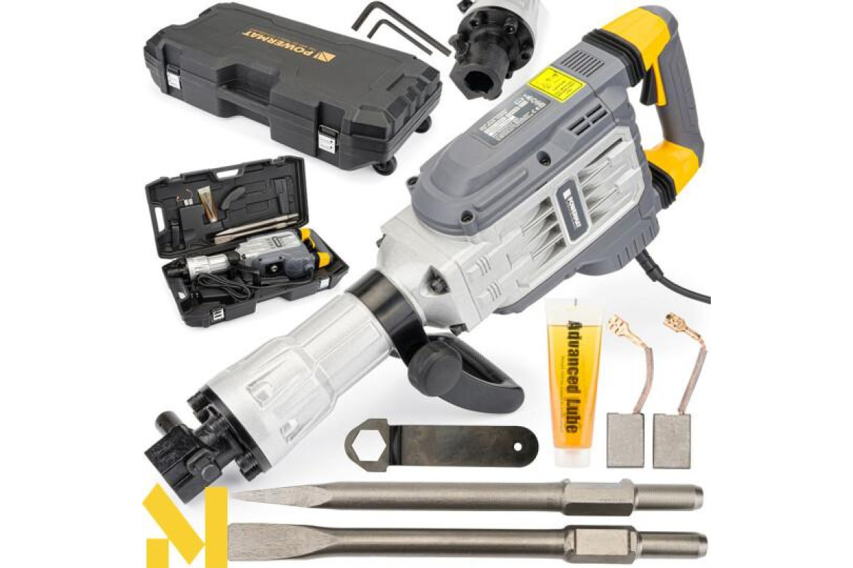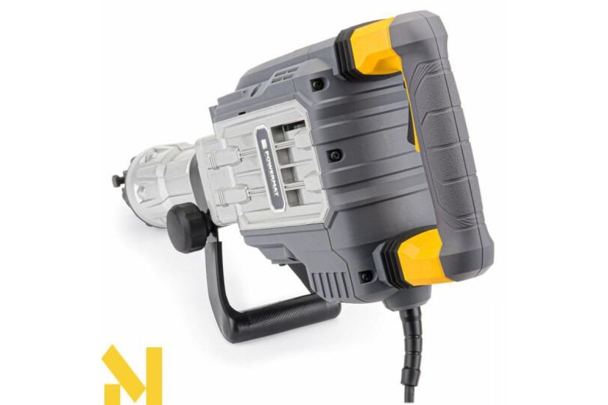 Відбійний молоток POWERMAT - це інноваційний пристрій з дуже високою робочою потужністю - 3300 Вт і надзвичайно високою ударною силою - 65 Дж. Він незамінний при руйнуванні бетонних конструкцій, стін, виливів тощо. Завдяки високоякісним матеріалам, використаним в його конструкції, відбійний молоток підходить як для професіоналів, так і для любителів будівельних робіт. Висока потужність нашого агрегату та міцна конструкція роблять молоток надійним та надзвичайно ефективним. Молоток оснащений додатковою ручкою, розташованою близько до центру пристрою, що забезпечує легку маневреність і точну роботу з молотком на 360 градусів.