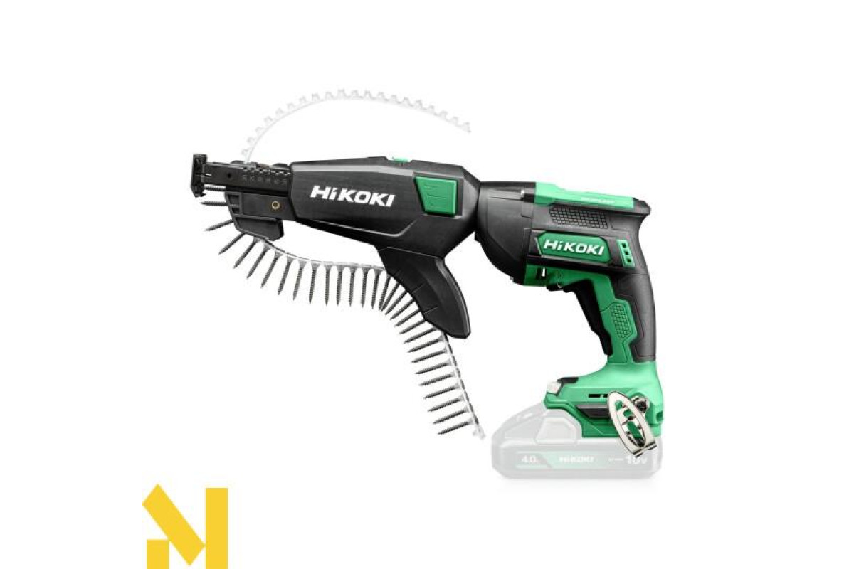 Акумуляторна викрутка для сухої забудови з безщітковим двигуном HiKOKI W18DBW3Z 18 В, 3000 об/хв, для монтажу дерев’яних плит та інших дерев’яних елементів.