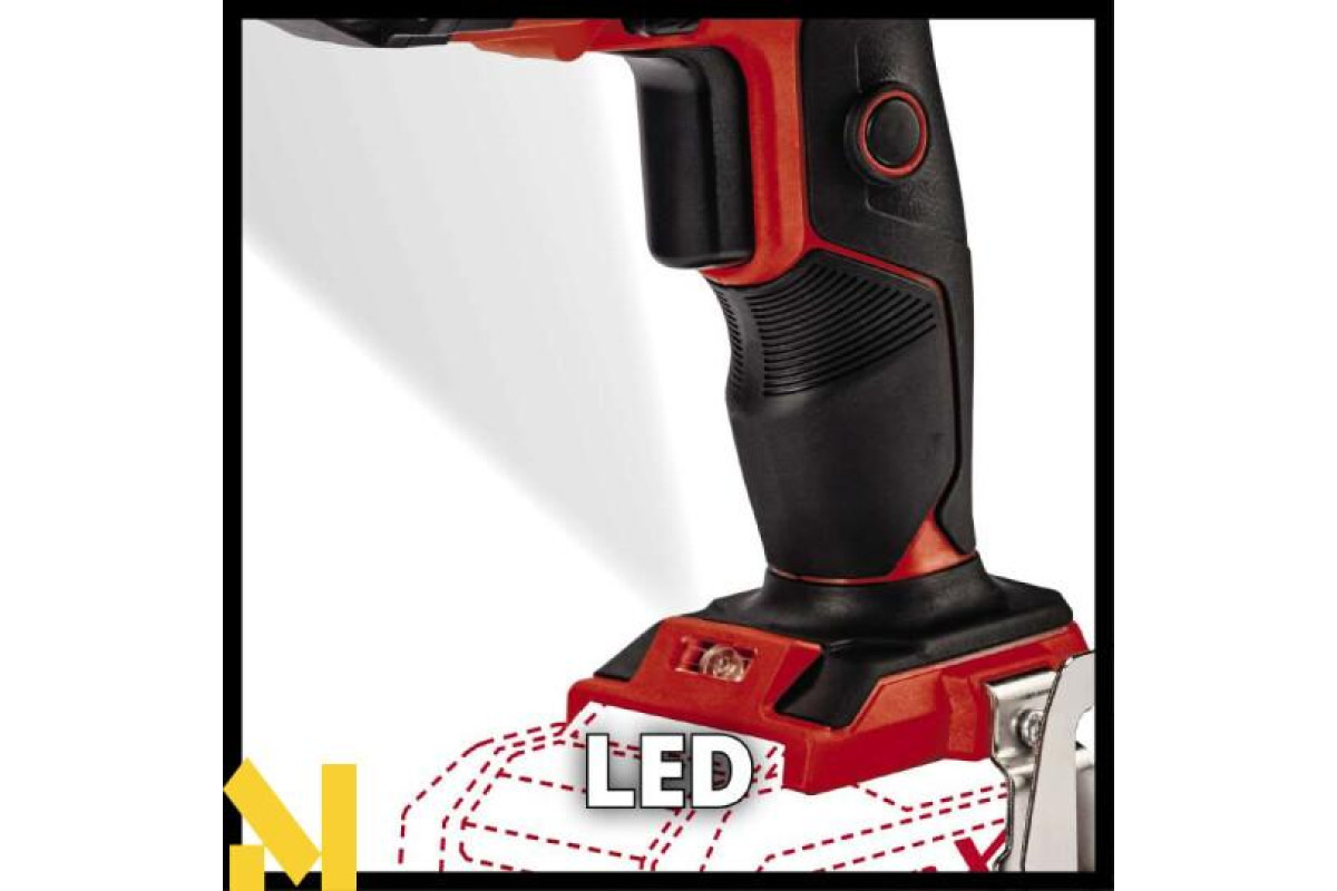Робота з низьким рівнем стомлюваності забезпечується обраним налаштуванням безперервної роботи. Світлодіодне підсвічування освітлює робочу зону. Для точного налаштування глибини є регульований обмежувач глибини. Біти можна змінювати швидко і інтуїтивно завдяки магнітному тримачу біт. Завдяки ергономічному дизайну, прогумованій м'якій рукоятці інструмент зручно лежить в руці, дозволяючи працювати легко, не відчуваючи втоми.